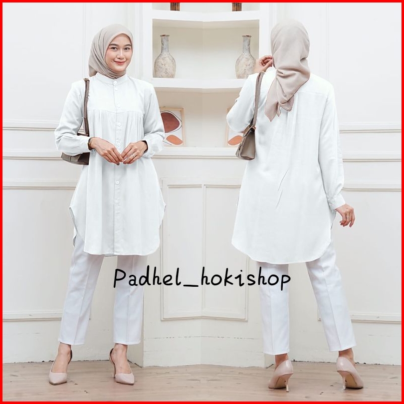 Aluna Tunik Baju Atasan Wanita Muslim Tunic Basic Polos Rayon Twill Premium Tunik Putih Kerja Kuliah Katun Adem Halus Le