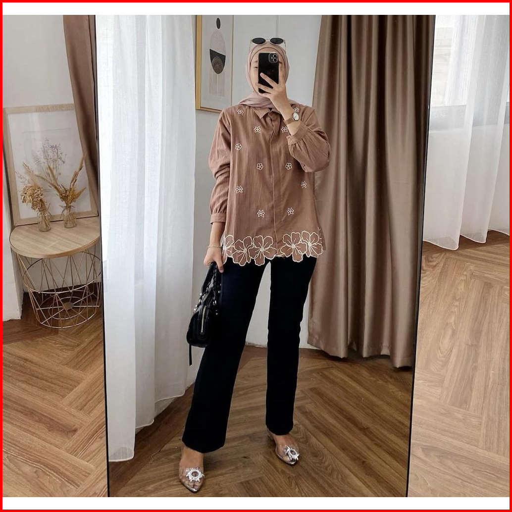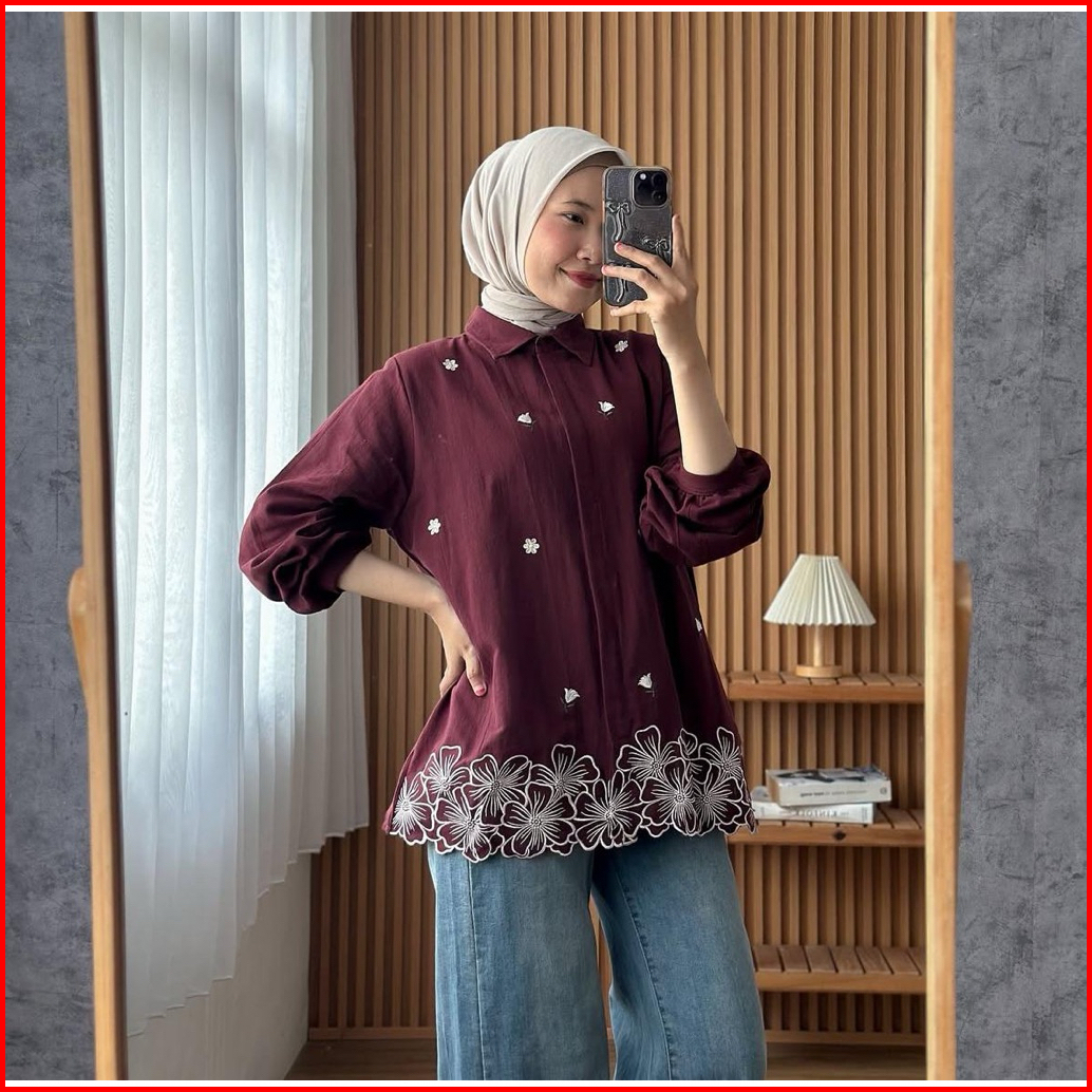 Berri Blouse Kemeja Bordir Wanita Linen Premium Shirt
