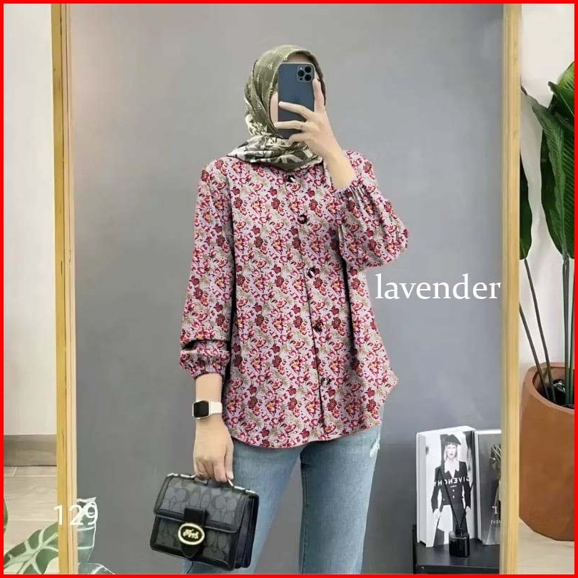 New Baju Blouse Atasan Wanita Blus Motif Bunga Lengan Panjang
