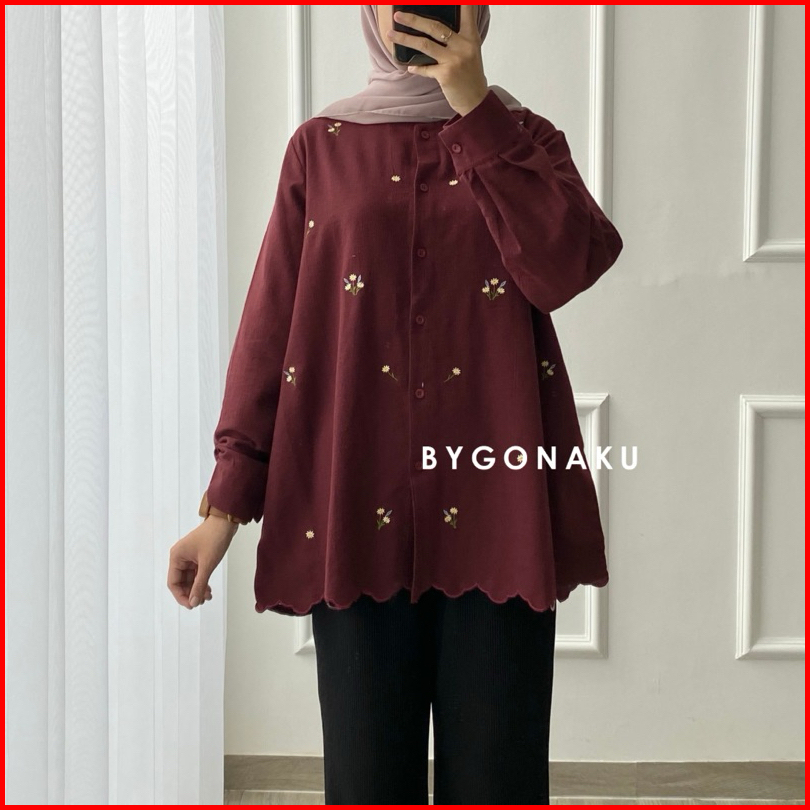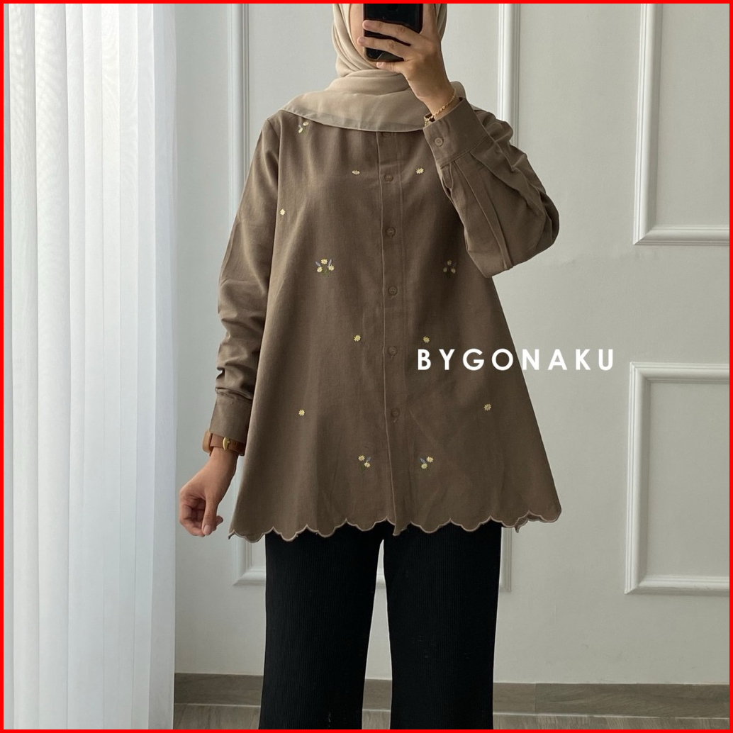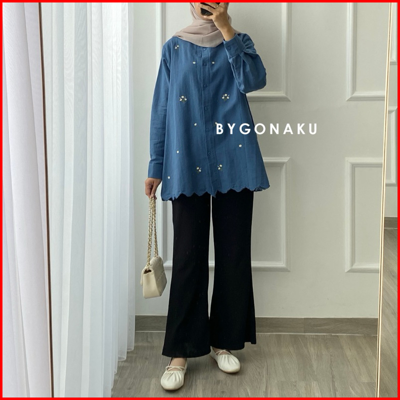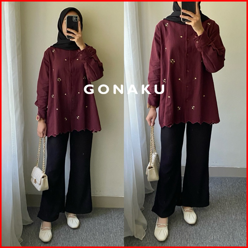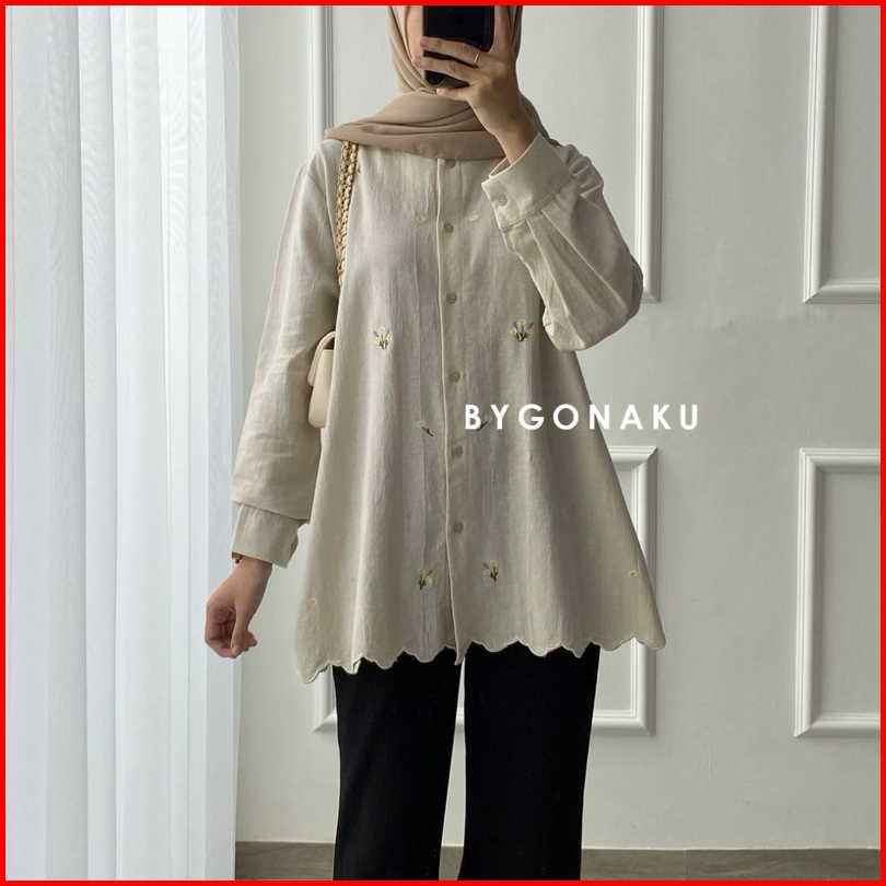 Gonaku Sena Top Linen Bordir Atasan Blouse Kemeja Kerja Wanita Busui Friendly