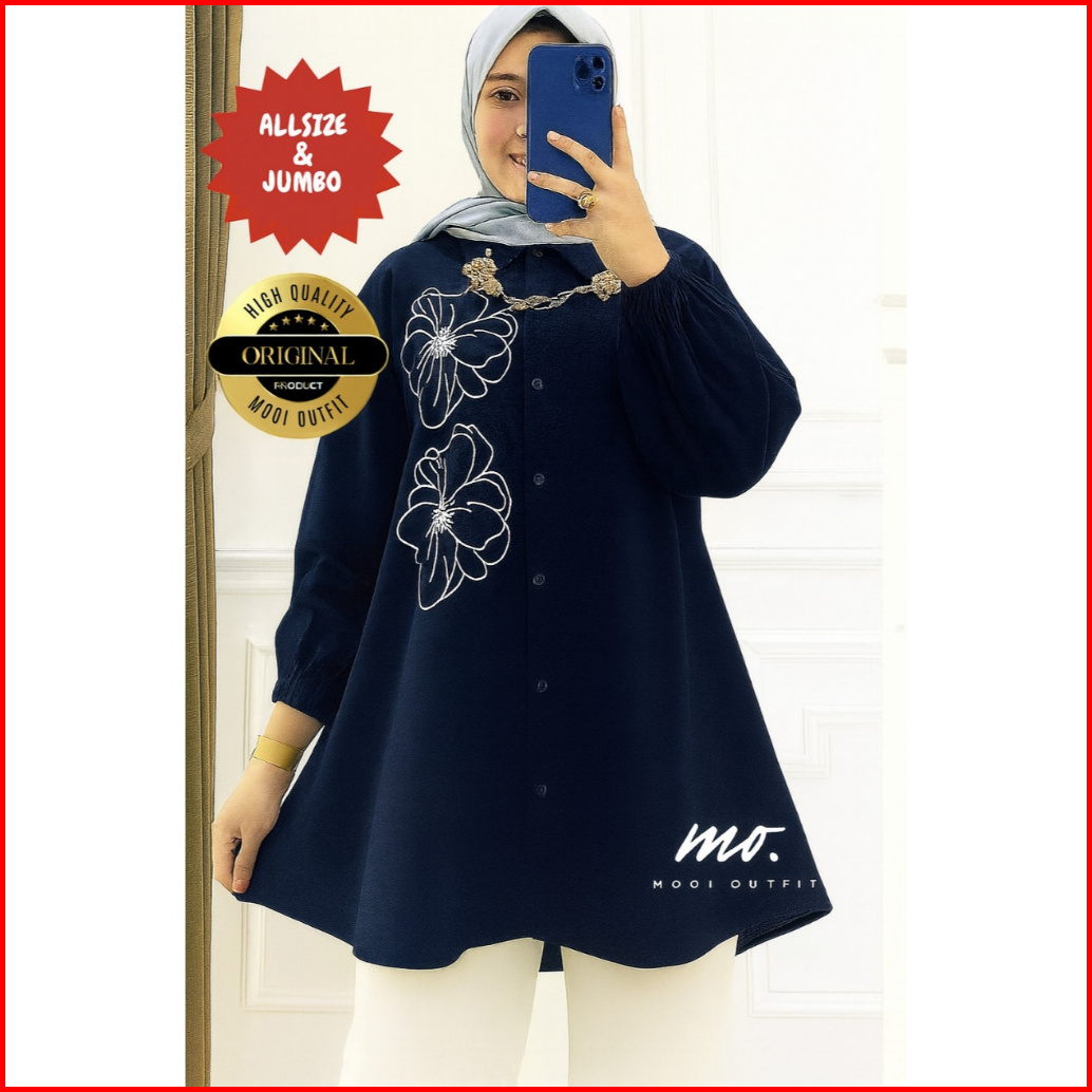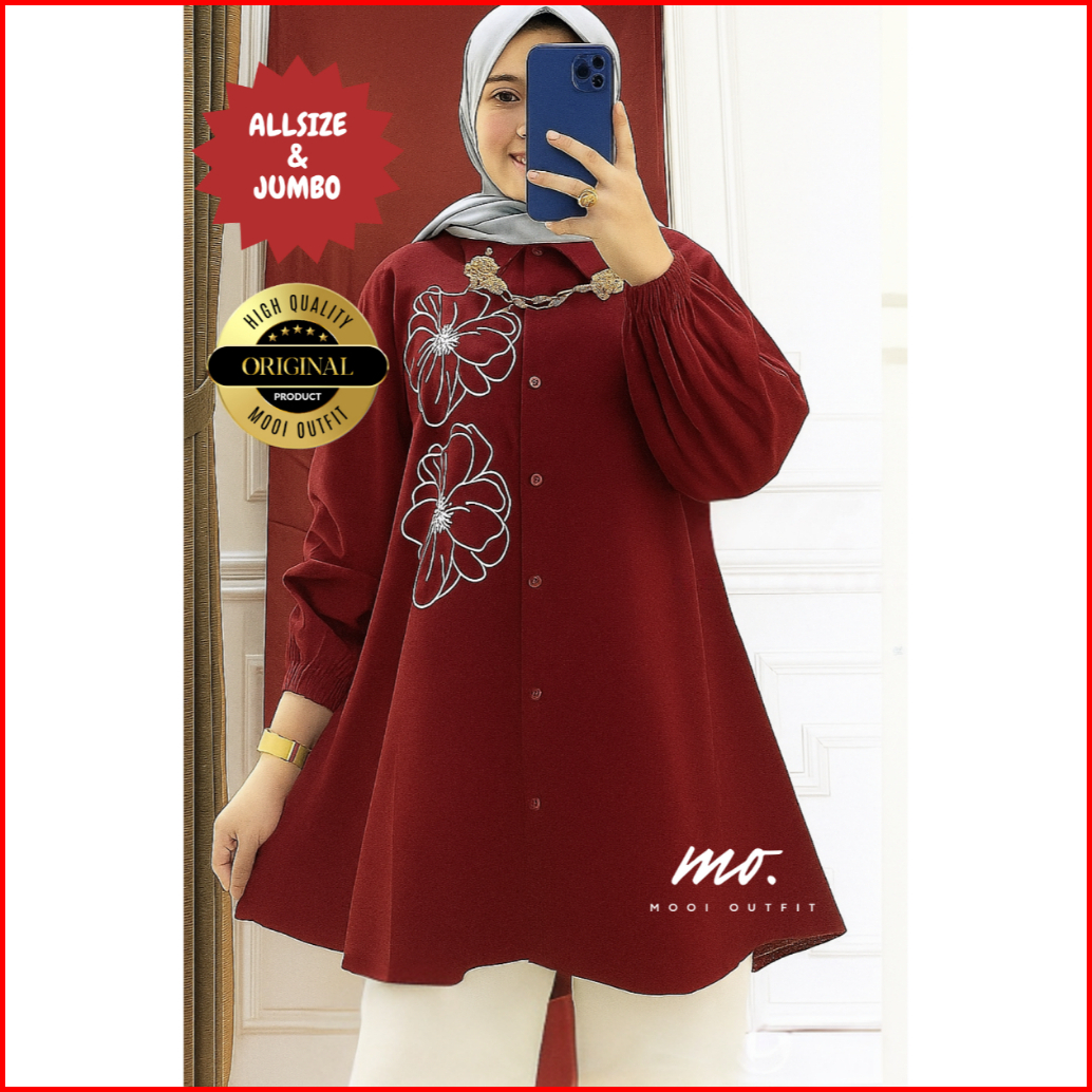Tunik Bordir Wanita Jumbo Ld 110 120 130 140 Kemeja Lengan Panjang Kekinian Murah Viral