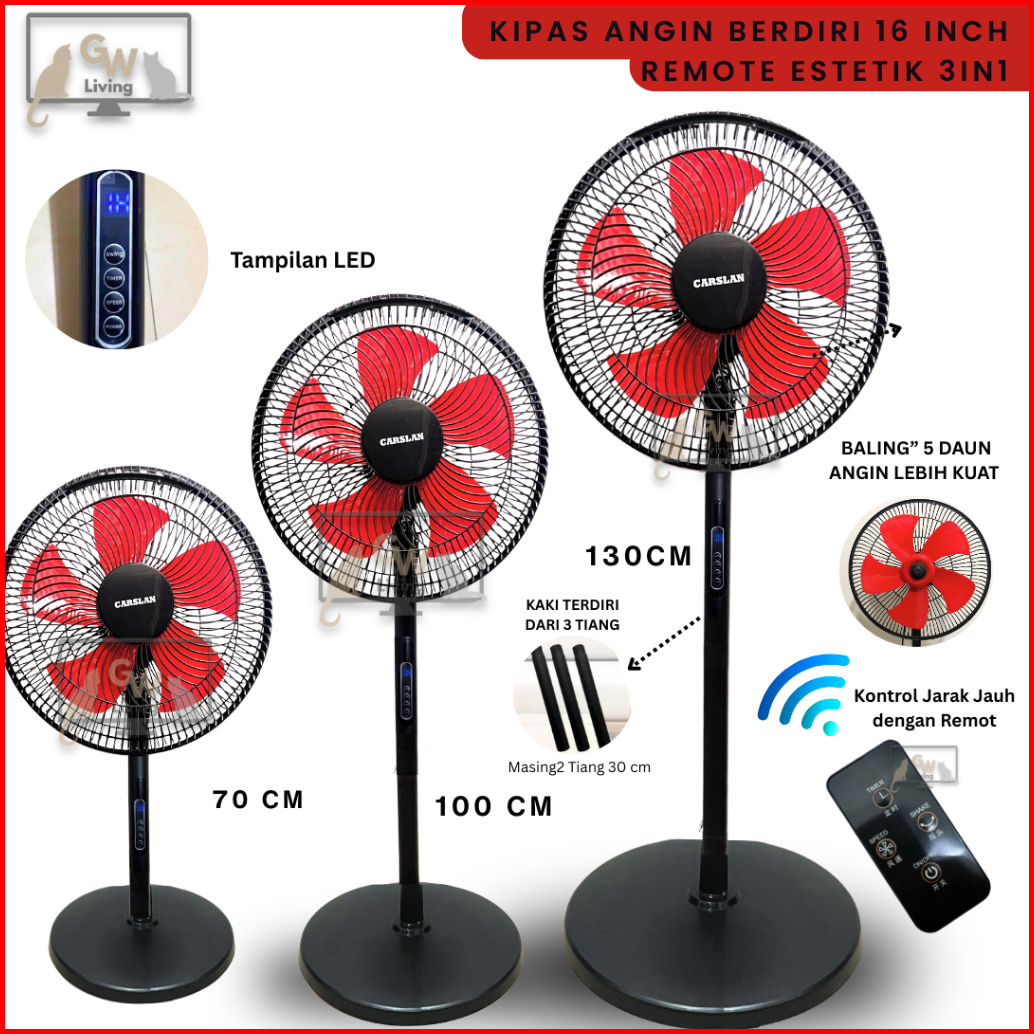 Kipas Angin Berdiri Stand Fan 16 Inch Estetik 5 Baling Kencang Jumbo Remot Timer Hemat Daya