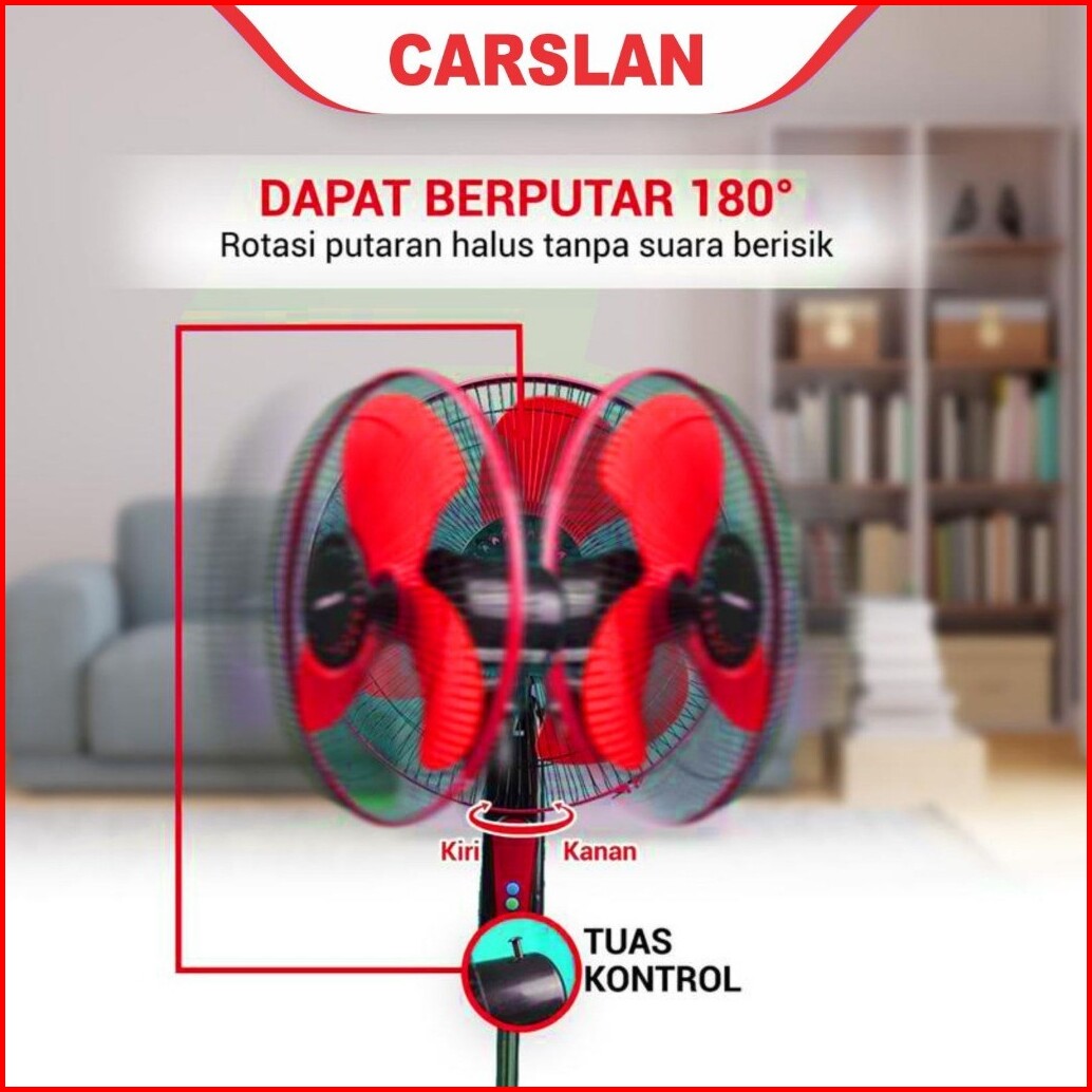 Kipas Angin Berdiri Carslan 16inch 40watt 3 Speed Hembusan Angin Kencang