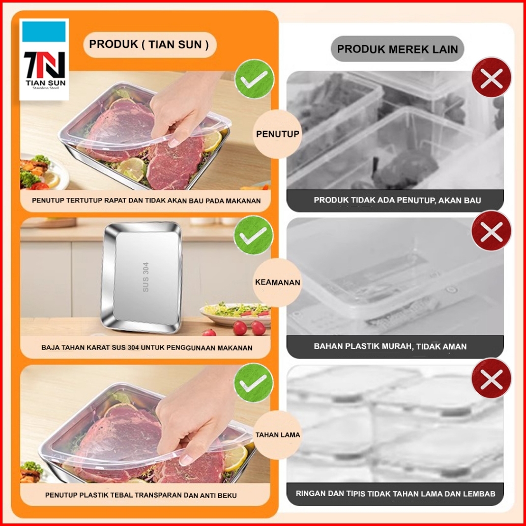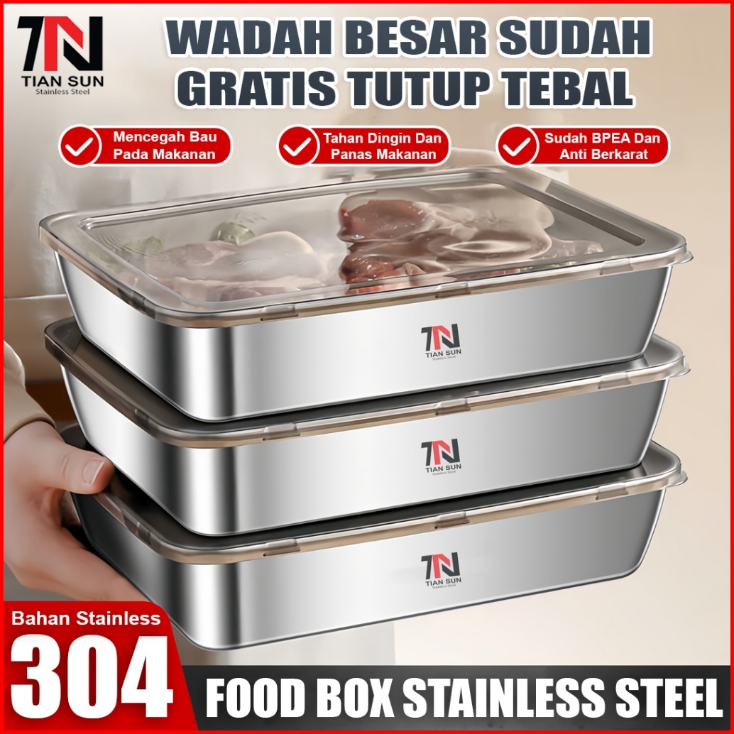 Tian Sun Kotak Penyimpanan Makanan Stainless Steel 304 Desain Tutup Tebal Anti Karat Dan Tahan Lama