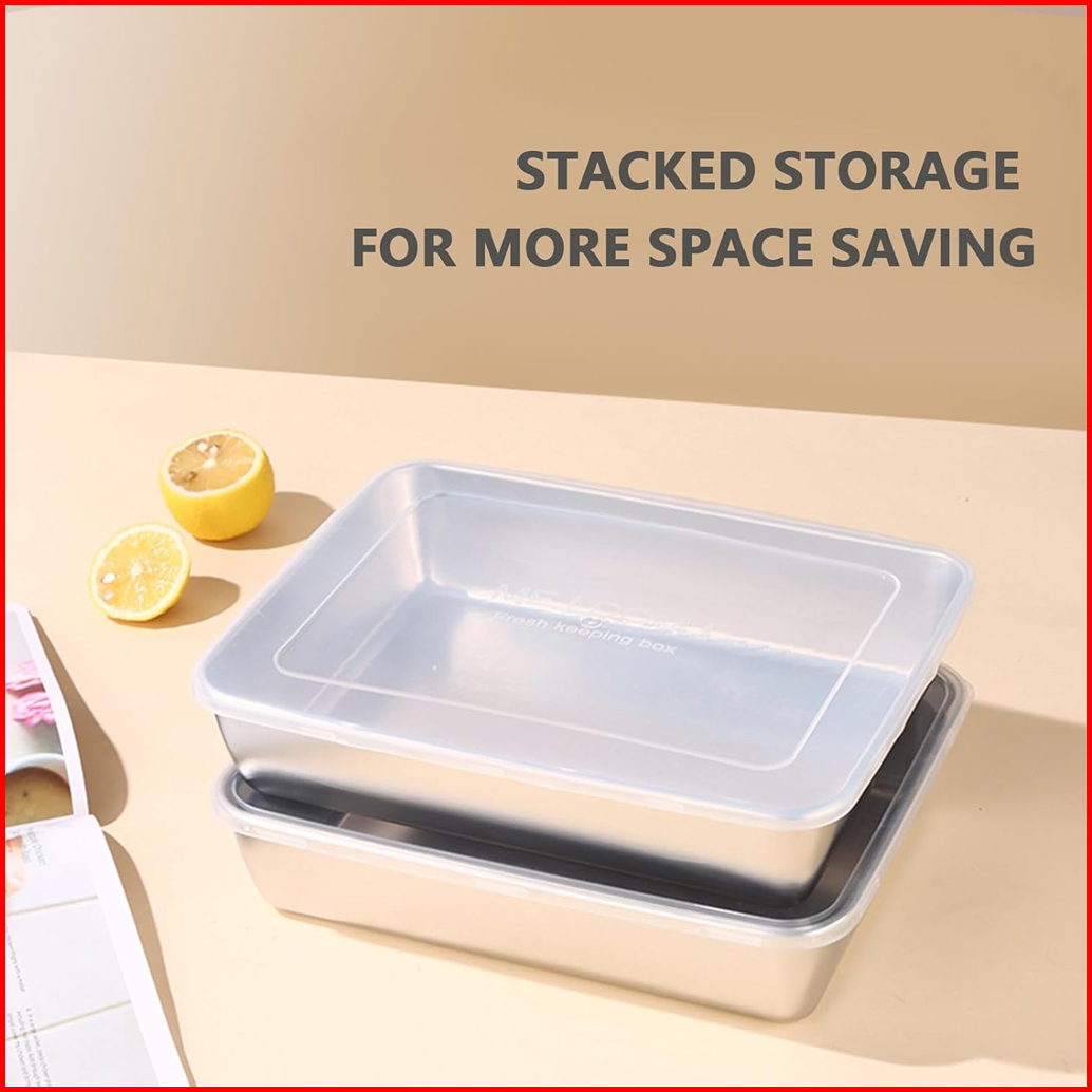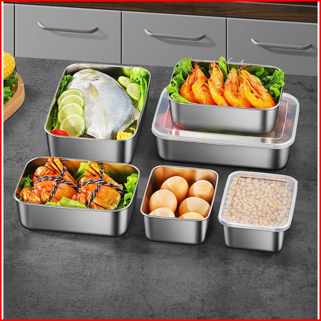 Kwe With Cover Organizer Kulkas Food Storage Box Stainless 304 3pack Set Kotak Kulkas Buah Sayur Daging Kotak Kontainer