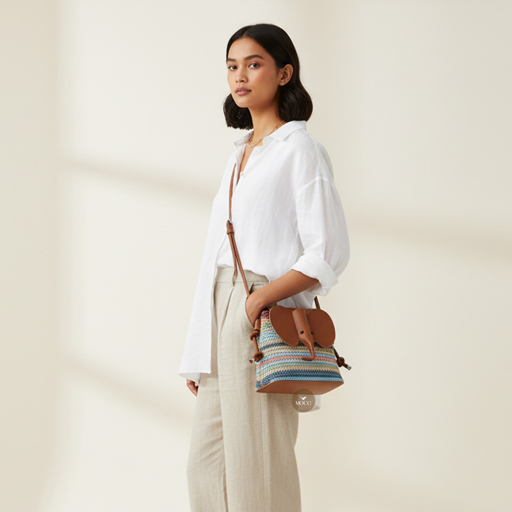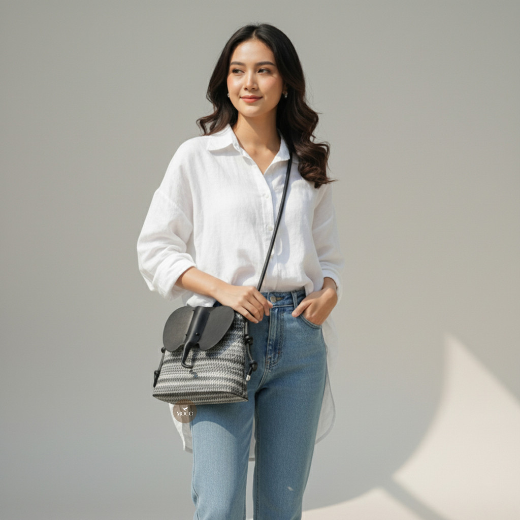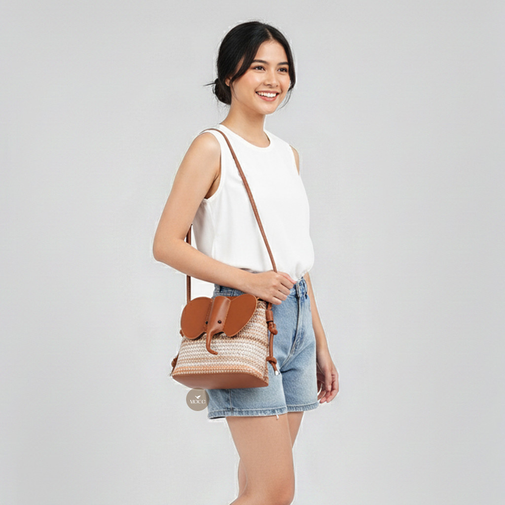 MOCO OFFICIAL - Raina Bag Fashion Tas Sling Bag Wanita Tas Selempang Bentuk Gajah Motif Rajut Tali Adjustable C10