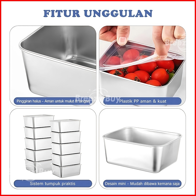 -kotak Makan Persegi Tempat Wadah Makanan Stainless Steel Food Box Bekal