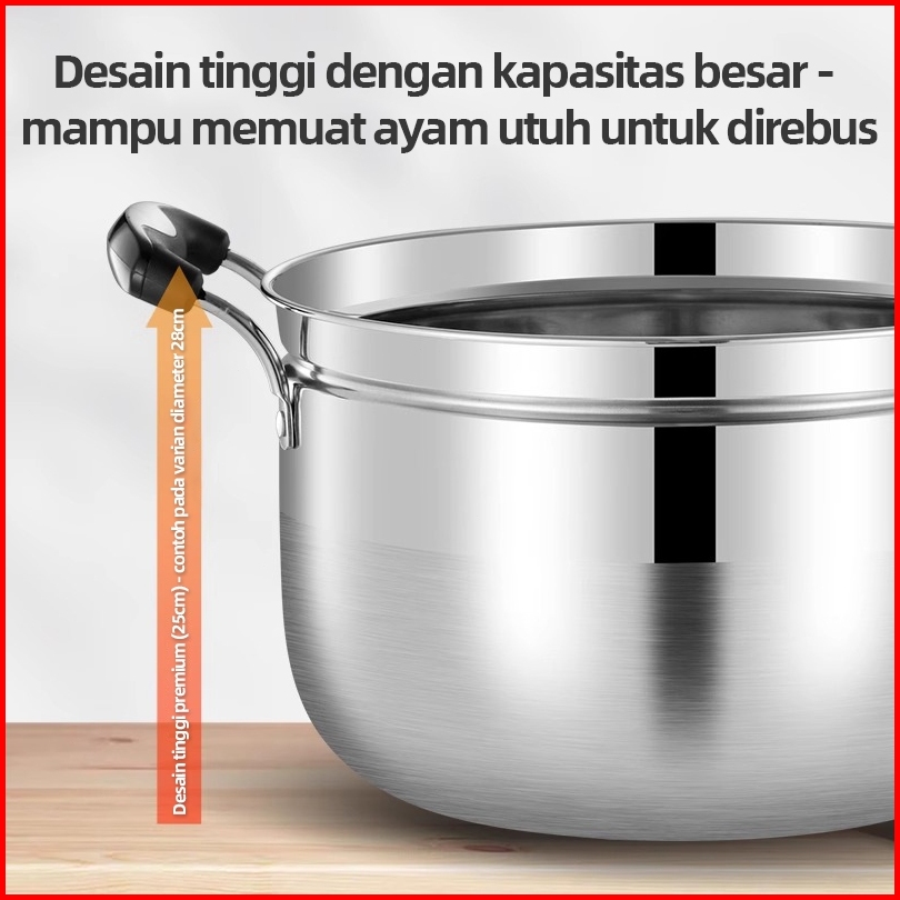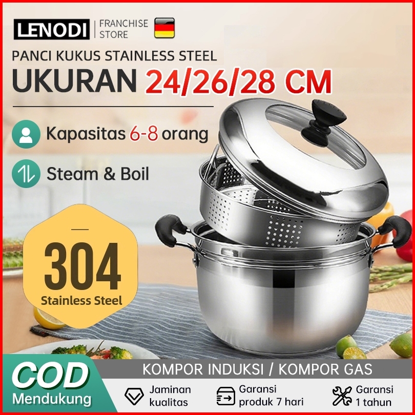 Lenodi 22cm 24cm 26cm 28cm Panci Kukus Stainless Steel Tebal Panci Steamer Bakpao Somay Panci Rebus Panci Masak Nasi