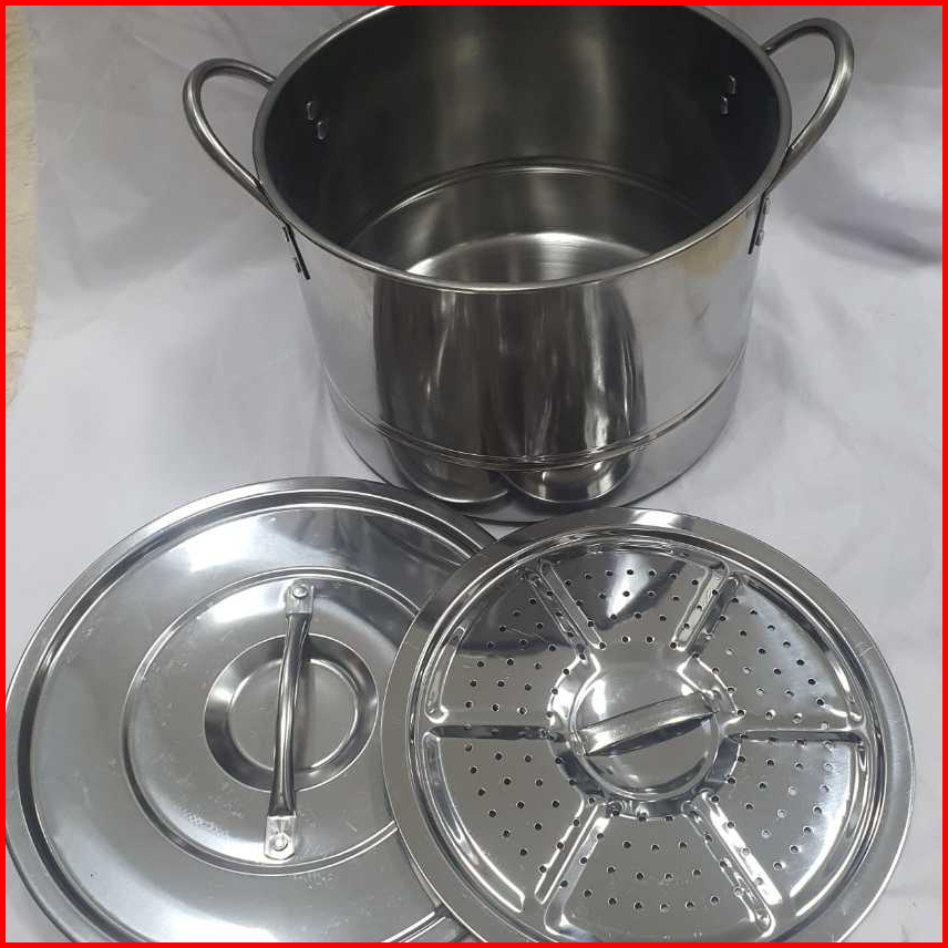 Stock Steamer Stainless Steel Panci Tebal Kukusan Panci Kukus Tinggi Dapet Saringan