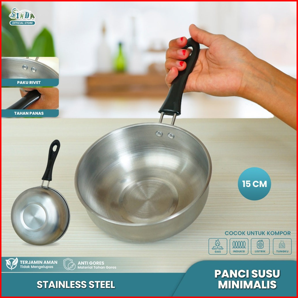 Sinda Panci Susu Stainless Steel-milk Pan 15cm Panci Mie Gagang Anti Panas