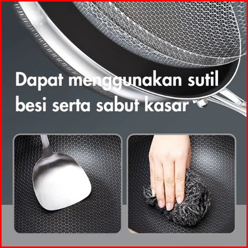 Wajan Penggorengan 34cm Anti Lengket Stainless Steel Ukuran Struktur Sarang Lebah Wajan Dengan Penutup