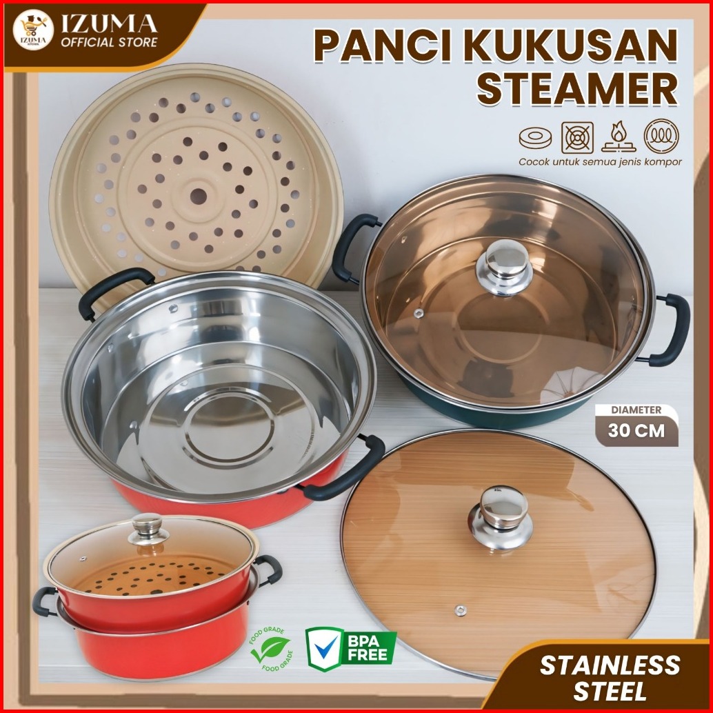 Izuma Panci Steamer 2 Susun Panci 28cm Kukus Panci Serbaguna Anti Lengket Packing Kardus