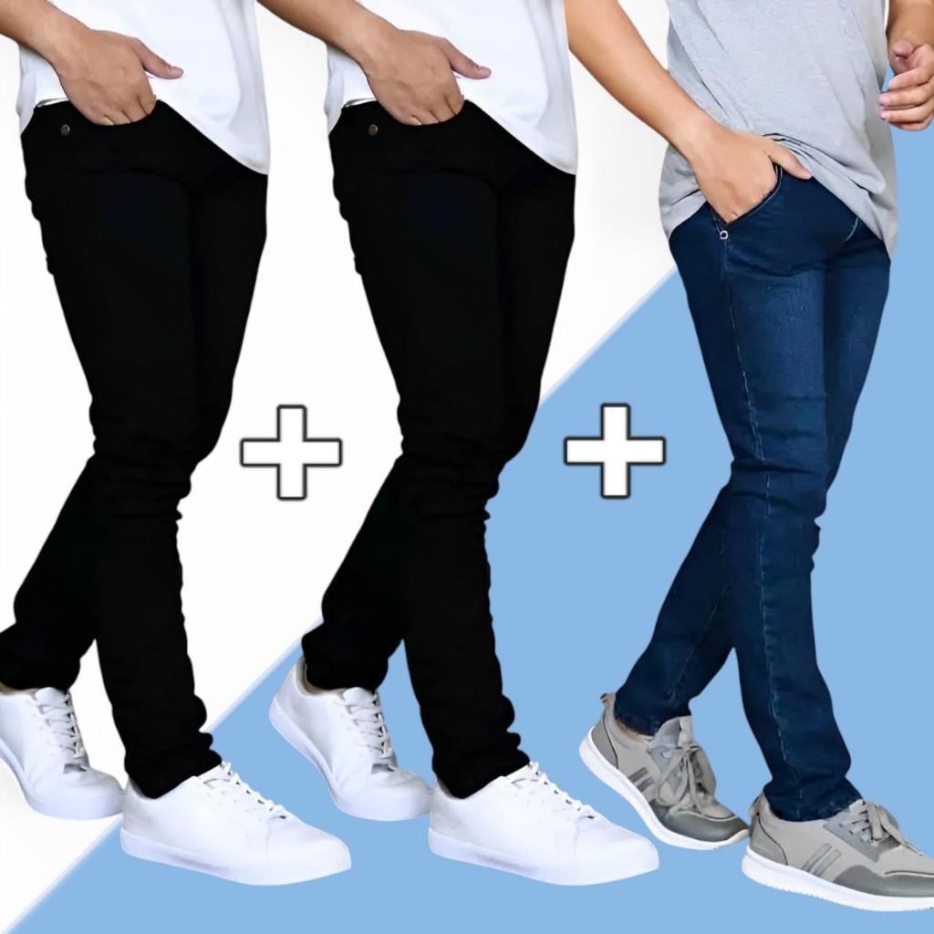(PAKET HEMAT) Beli 2 Gratis 1 Pcs / Bisa / Bayar Di Tempat / Celana Jeans Pria Slim Fit / Celana Jin Cowok Pensil / Celana Jeans Panjang Pria / Celana Panjang Laki-laki / Bahan Melar