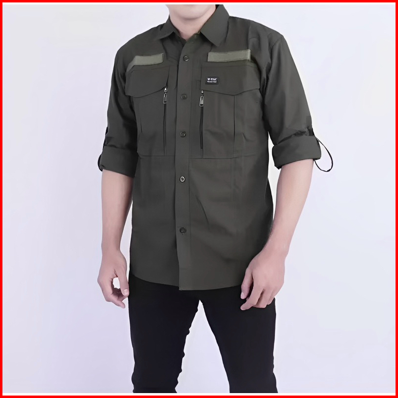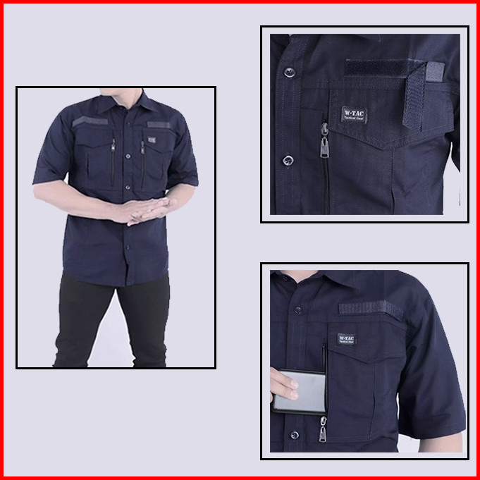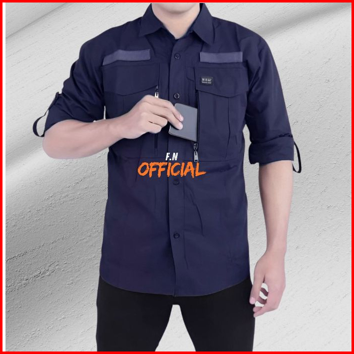 Baju Seragam Kerja Kantor Lengan Panjang W-tec Kemeja Lapangan Tactical Pdh Warna Navy