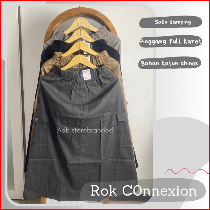 Rok Wanita Connexi0n Rok Cargo Katun Tebal Cewek Polos Kargo Saku
