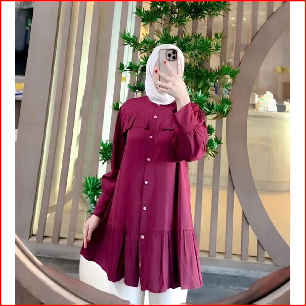 Anin Tunik Basic Ruffle Rayon Twill Warna Beragam