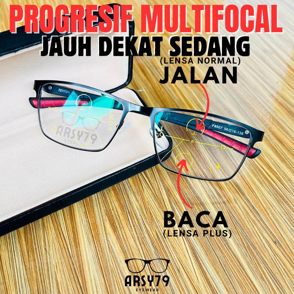 Kacamata Pria Progresif Plus Baca Dan Jalan Lensa Bluecromic Photocromic Frame Titanium