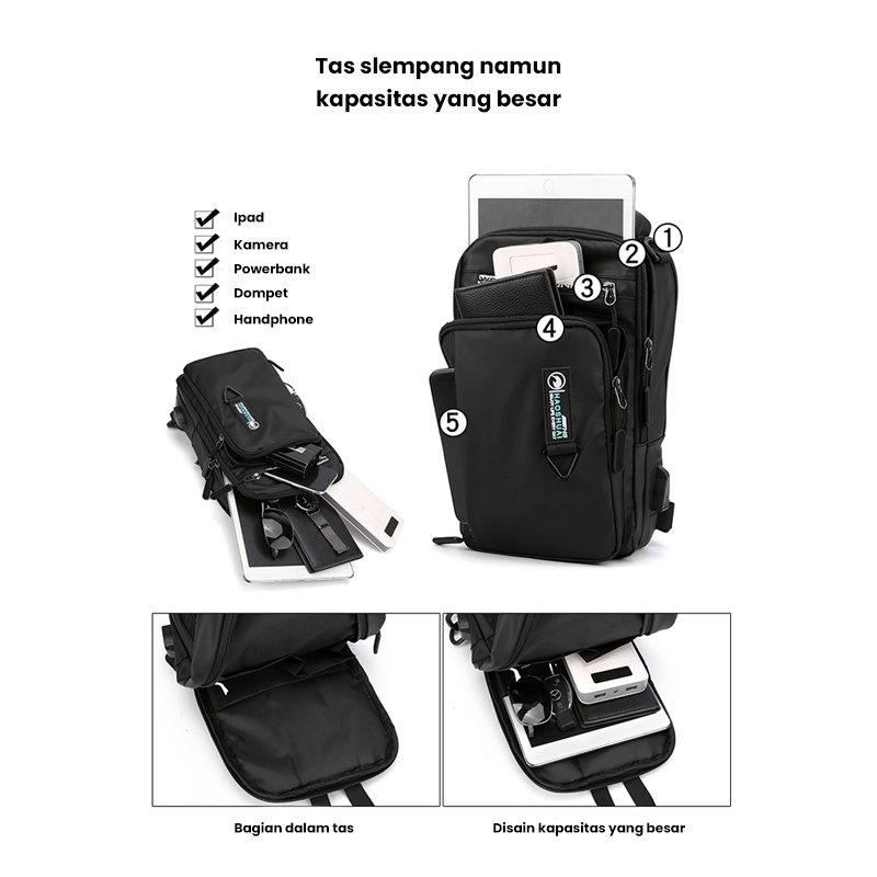 Freeknight Tas Selempang Pria USB Charger Slingbag Pria Trendy dan Tahan Air Waist Bag Crossbody Outdoor Tas Slempang Pr