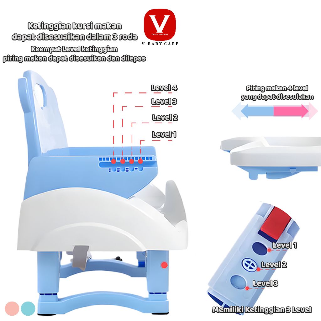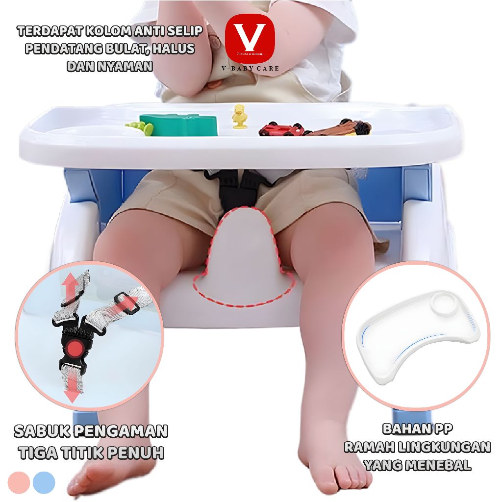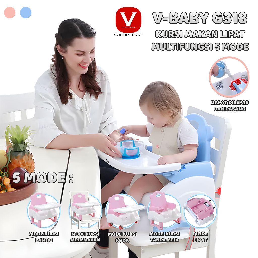 V-BABY CARE Kursi Makan Bayi (Baby Chair) Kursi Makan Balita (5in1) Dapat dilipat dan Ada Roda- G318