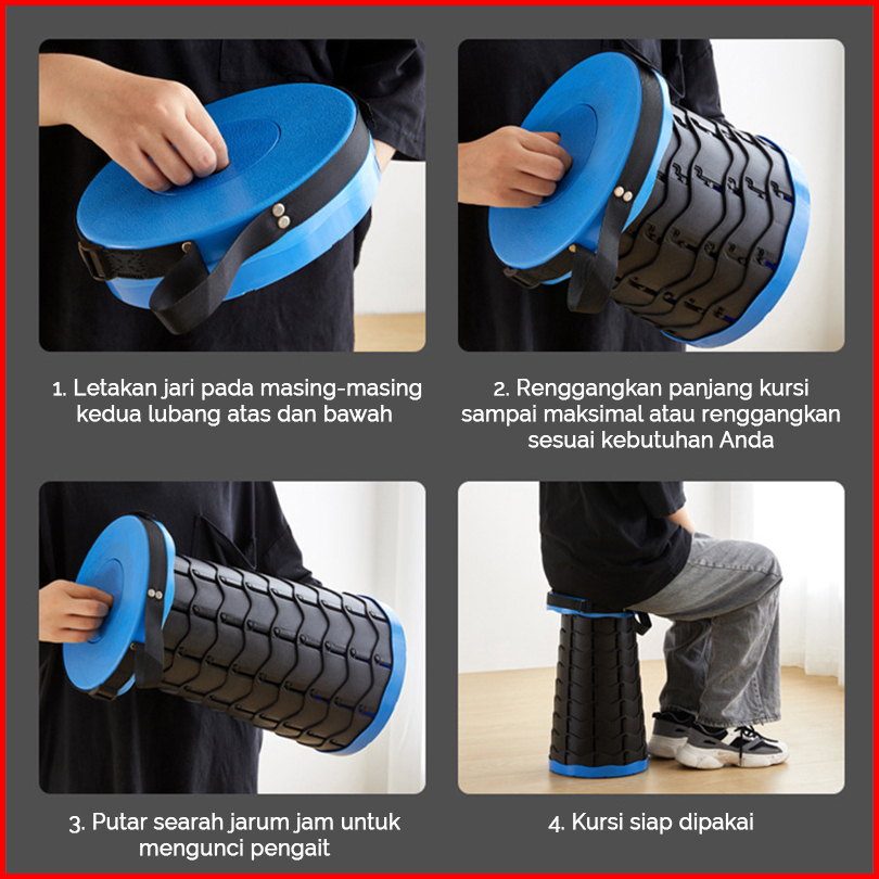 Kursi Lipat Teleskopik Bahan Plastik Bangku Lipet Tarik Bulat Kuat Stabil Tahan Lama Multifungsi