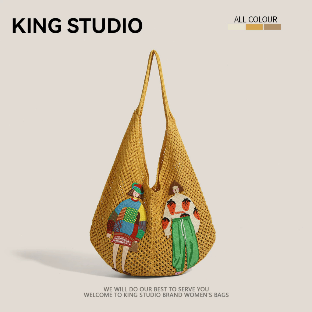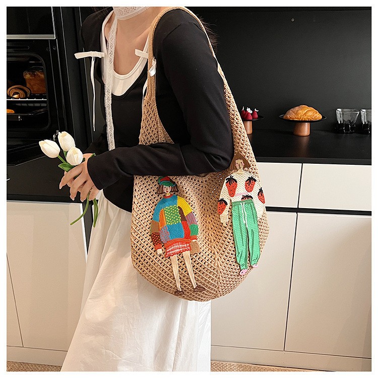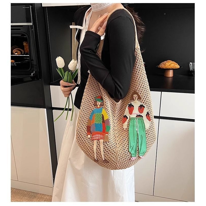 Tas Wanita Jaring Korea Cocok/Tas Bahu Wanita Tenunan daily kerja kuliah/Tas Cewek Pantai Anyaman/Tas Selempang Wanita/T