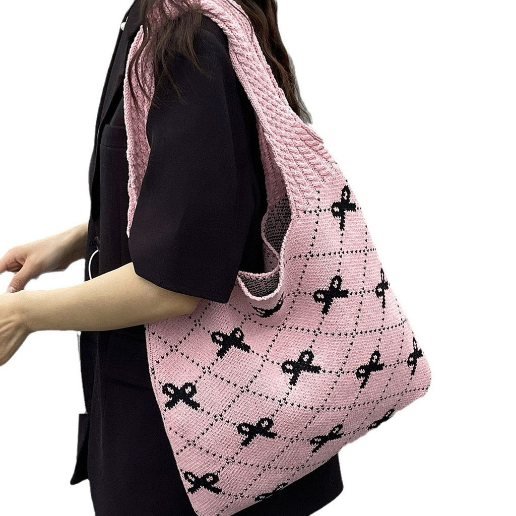 Knitted Cute Korean Beach Tote Bag / Tas Rajut Korea Premium Tebal Jumbo / Tas Pantai Totebag Couquette