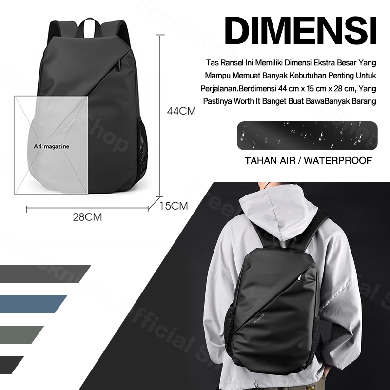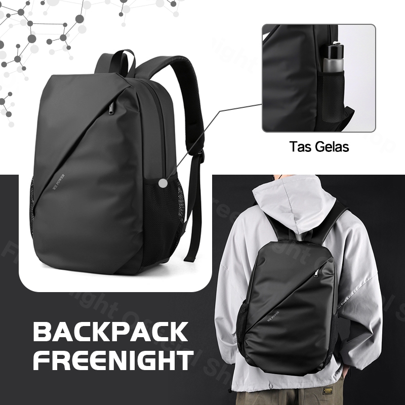 Freeknight Backpack Anti Air Tas Sekolah Kuliah Polos Pria Ransel Laptop Trendy Hitam TR708