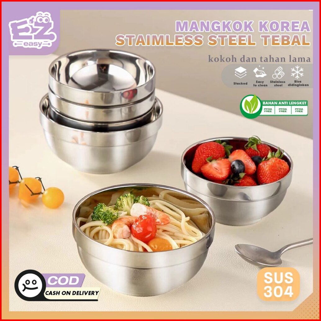Mangkuk Korea Stainless Steel Tebal Sus304 Anti Karat Tahan Karat Mudah Dicuci