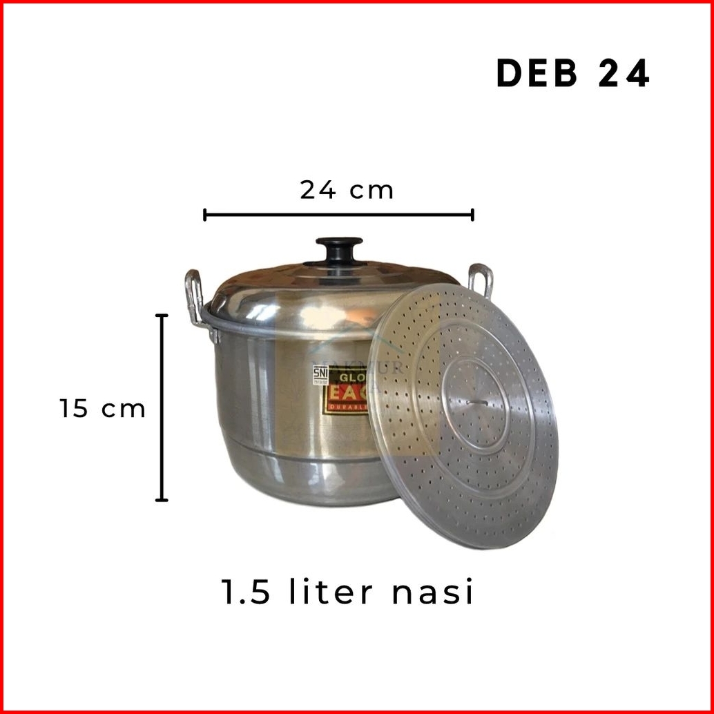 Global Eagle Panci Dandang Langseng Kukusan Alumunium Steamer Global Sg Pengukus Serbaguna Ukuran 20 22 24 26 28 30 33 C