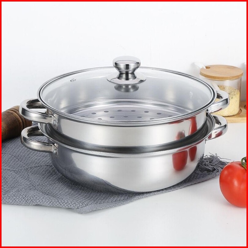 Murah Lebay - Panci Sup Kukus Ikan Bakpao Siomay 2 Susun 28cm Stainless Steel