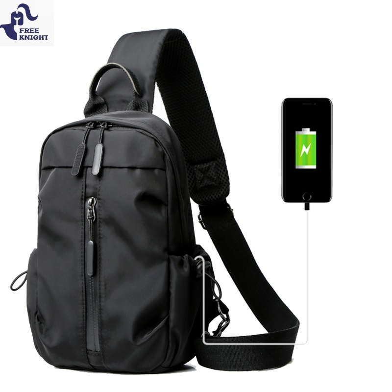 Freeknight Tas Selempang Pria USB Sling Bag Waterproof Tas Slempang Polos Fashion Casual Black TS714