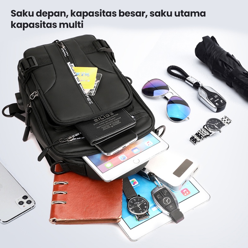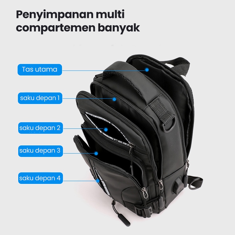 Freeknight Tas Selempang Pria Keren Multifungsi Sport USB Charge Fashion Slempang Waterproof TS713