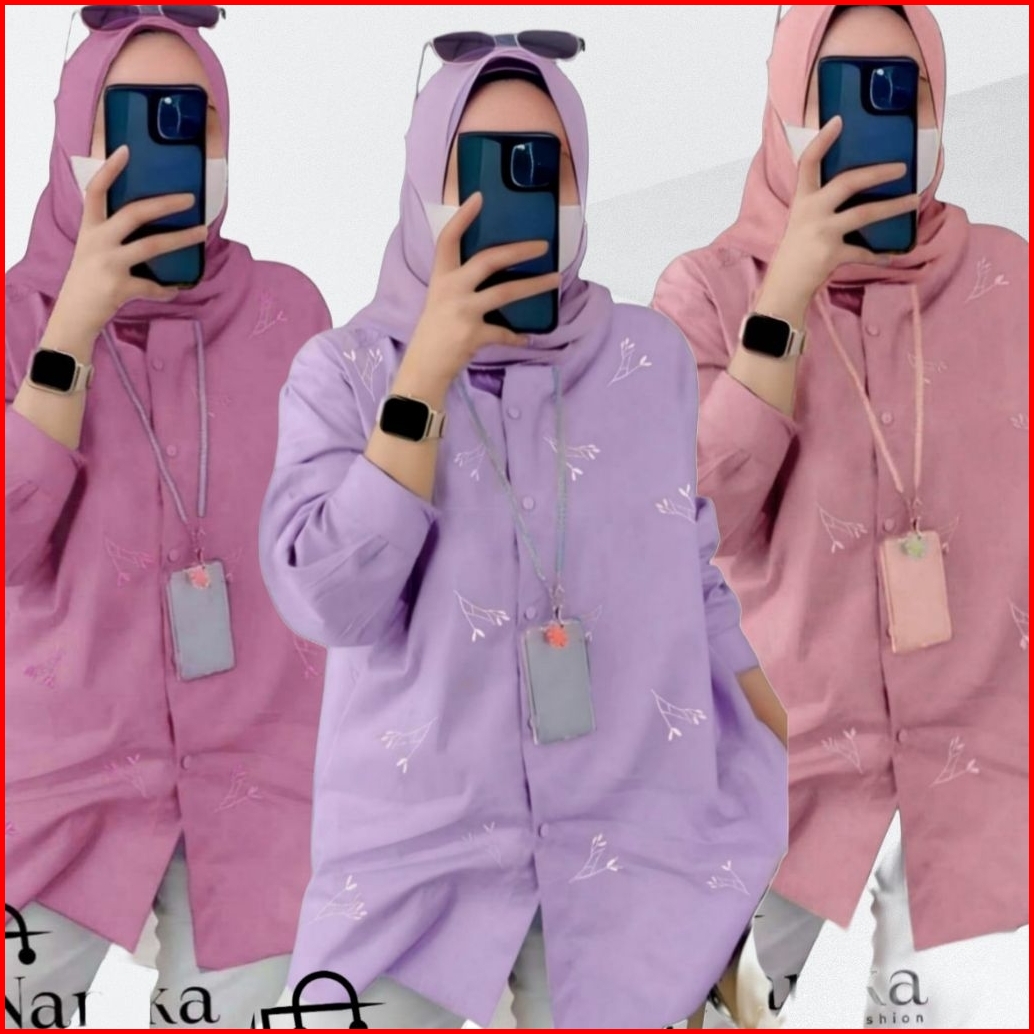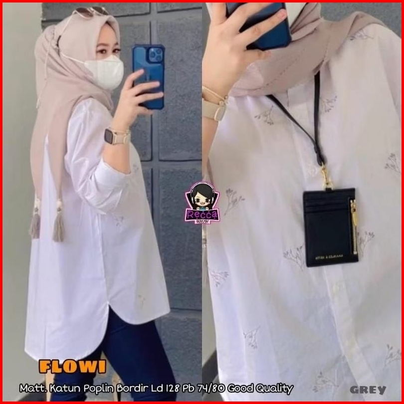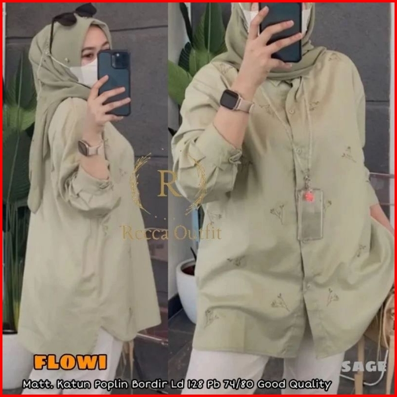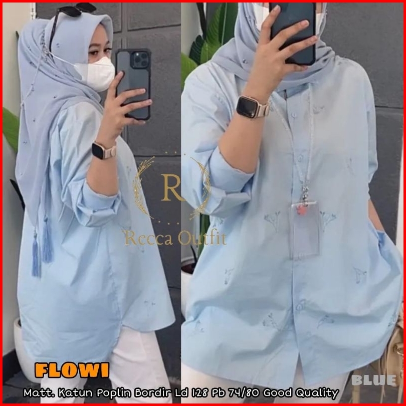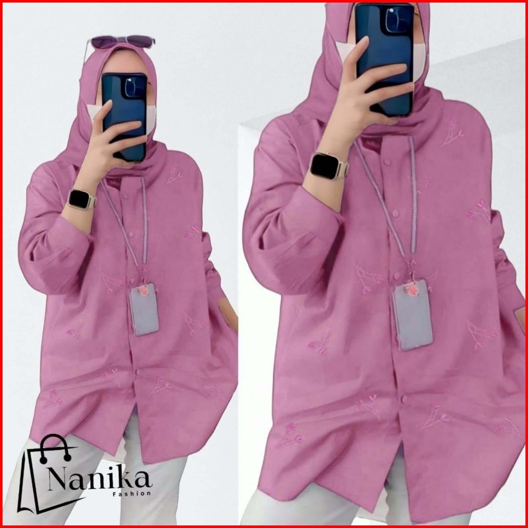 Kemeja Bordir Bunga Katun Premium Wanita Jumbo. Atasan Lengan Panjang Flowi Shirt By Masilca