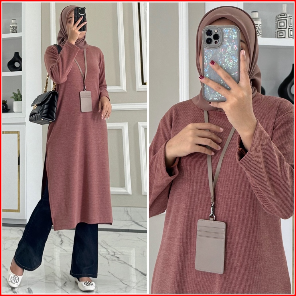 Abigail Knitt Tunik By Zalfa Outfit Baju Atasan Wanita Muslim Tunik Harian Panjang Polos Snow Knitt Premium