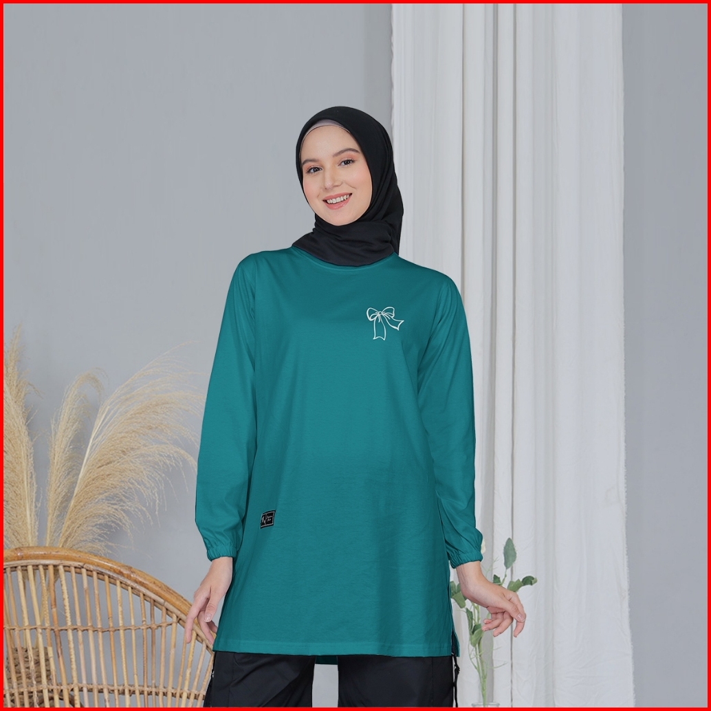 Kaos Tunik Wanita Motif Pita Ribbon Coquette Kekinian Premium Bahan Katun Combed 20s Original Terbaru