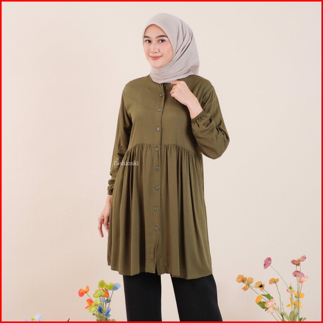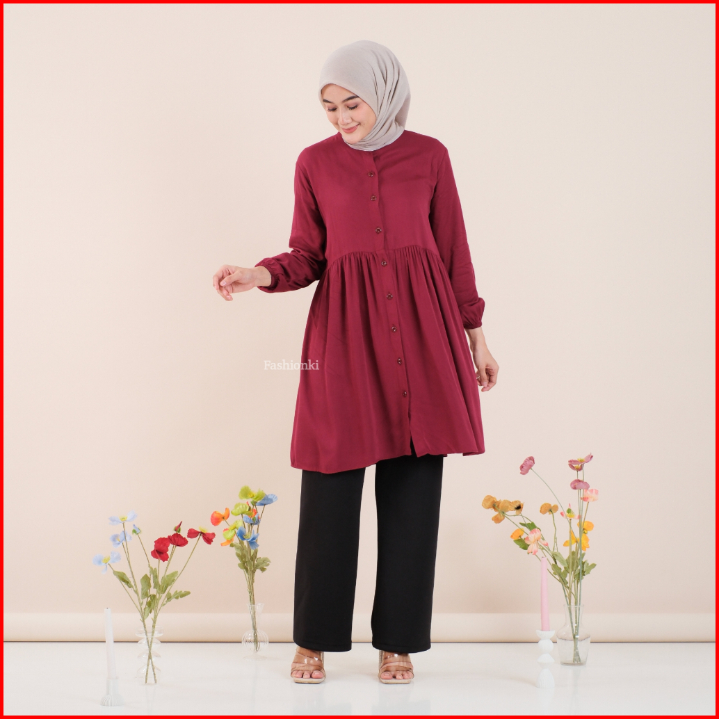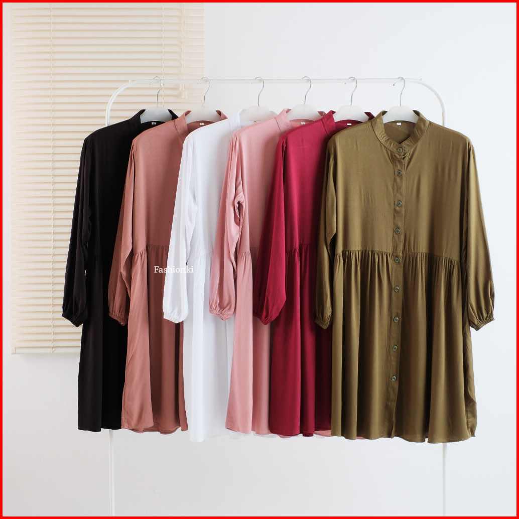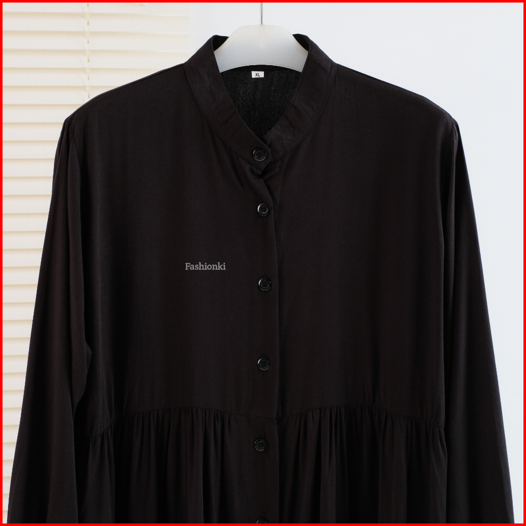 Tunik Hitam Wanita Lengan Panjang Baju Atasan Tunik Wanita Rayon Premium