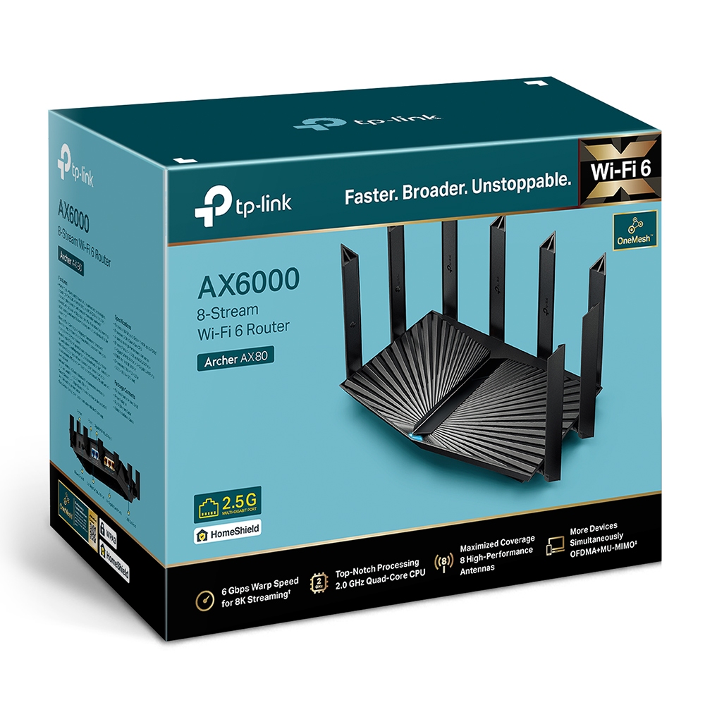 TP-Link Archer AX80 AX6000 WiFi 6 Router Wireless Dual Band Gigabit 8 Antenna Mesh Gaming VPN New