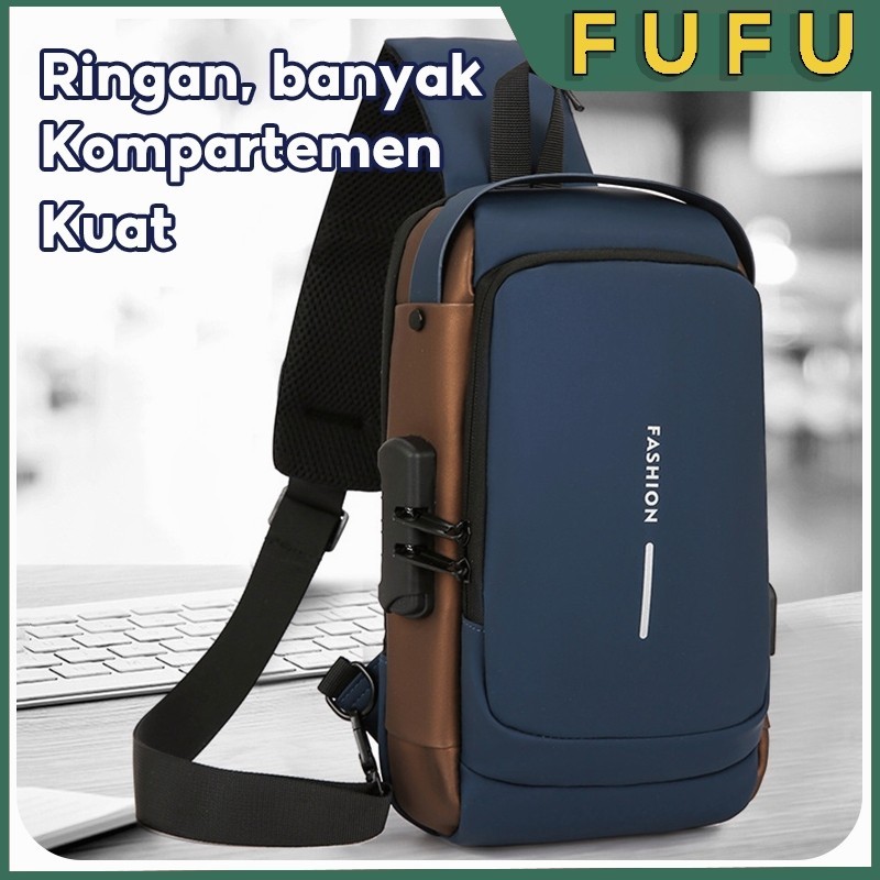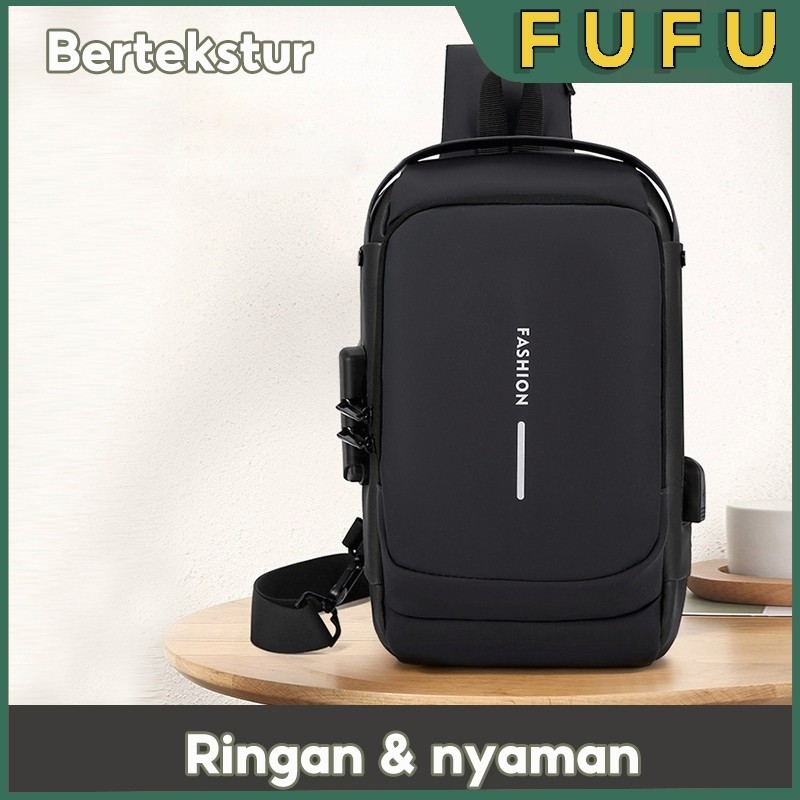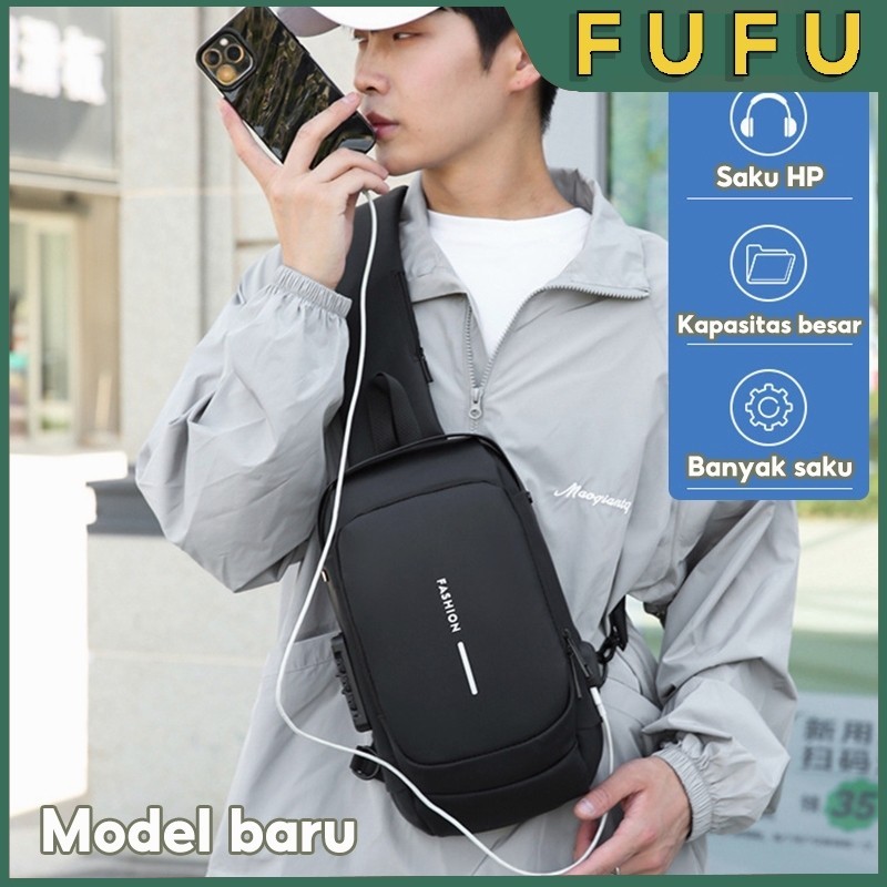 FUFU Shoulder Bag Tas Pinggang Tas Selempang USB Charger Port Pria Wanita Unisex