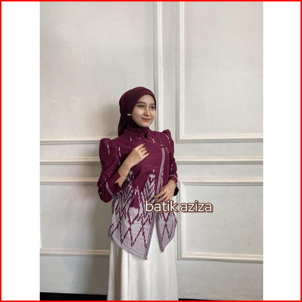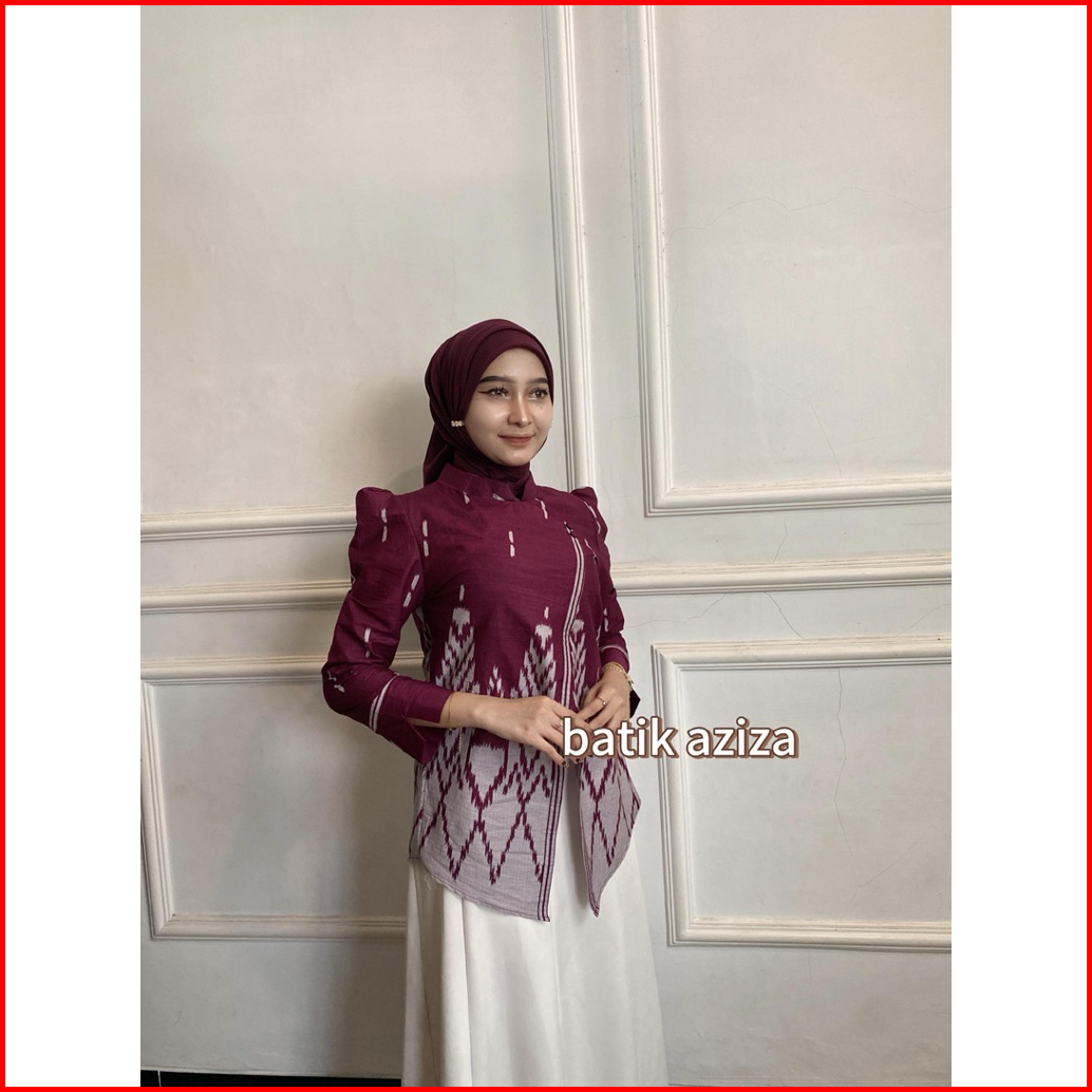 Batik Aziza- Atasan Batik Wanita Kebaya Janggan Motif Songket Lengan Panjang Bahan Katun Tebal