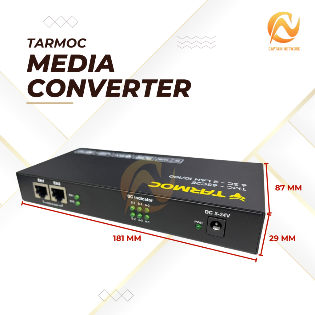 Tarmoc TMC-6SC2E-3A3B-P | Media Converter Switch 6SC 2LAN / 6 SC 2 LAN 10/100Mbps POE IN 5-24 Volt | 6FO 2LAN / 6 FO 2 LAN 10/100 Mbps