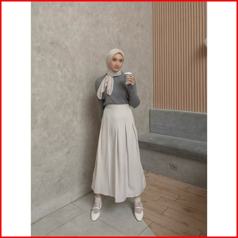 Savva Skirt Rok Lipat Wanita- Korean Skirt Rok Wanita Polos Loose Maxi Scuba Wanita Anti Kusut