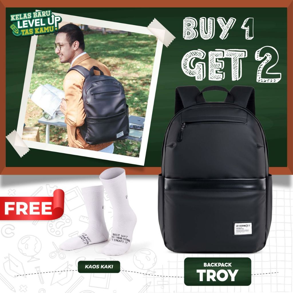 Evernext - Tas Ransel Pria Waterproof Tas Sekolah Pria Wanita Anti Air Backpack Laptop Troy