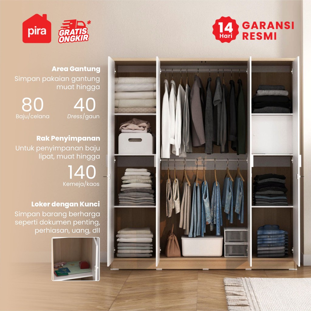 PIRA METROPOLIS OX - ARUNA 4P A LK Lemari Pakaian 4 Pintu / Lemari Baju dengan Loker Penyimpanan
