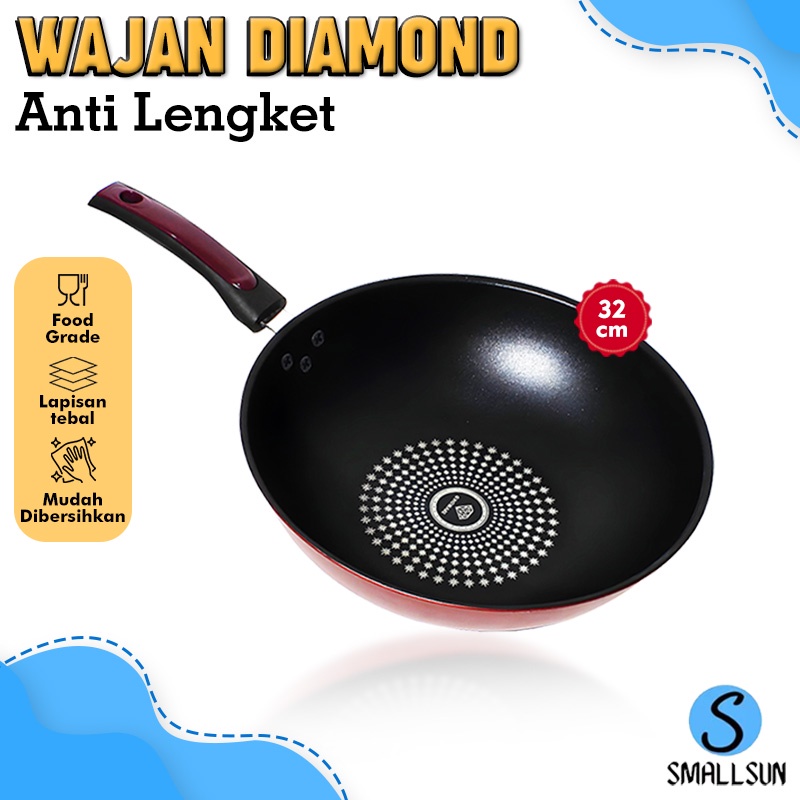 (SS) Wajan Diamond Wok Pan Cast Iron Wajan Penggorengan Anti Lengket Batu Medis Serbaguna Ukuran 32cm