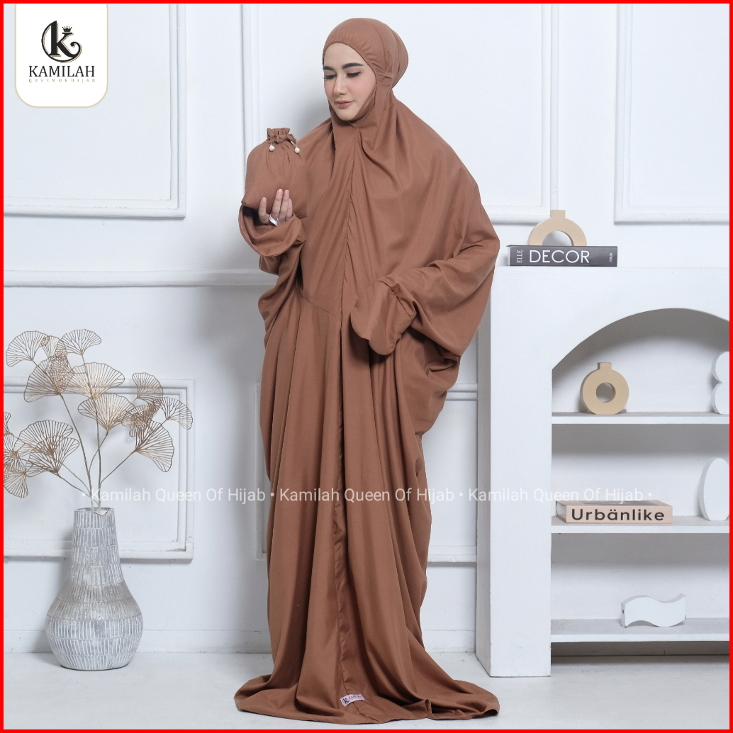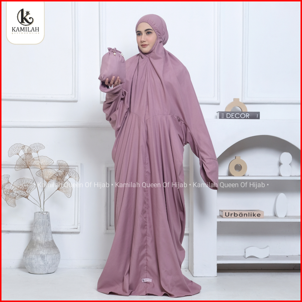 Kamilah - Mukena Terusan Dewasa Lajuran Langsungan Traveling Polos Katun Premium