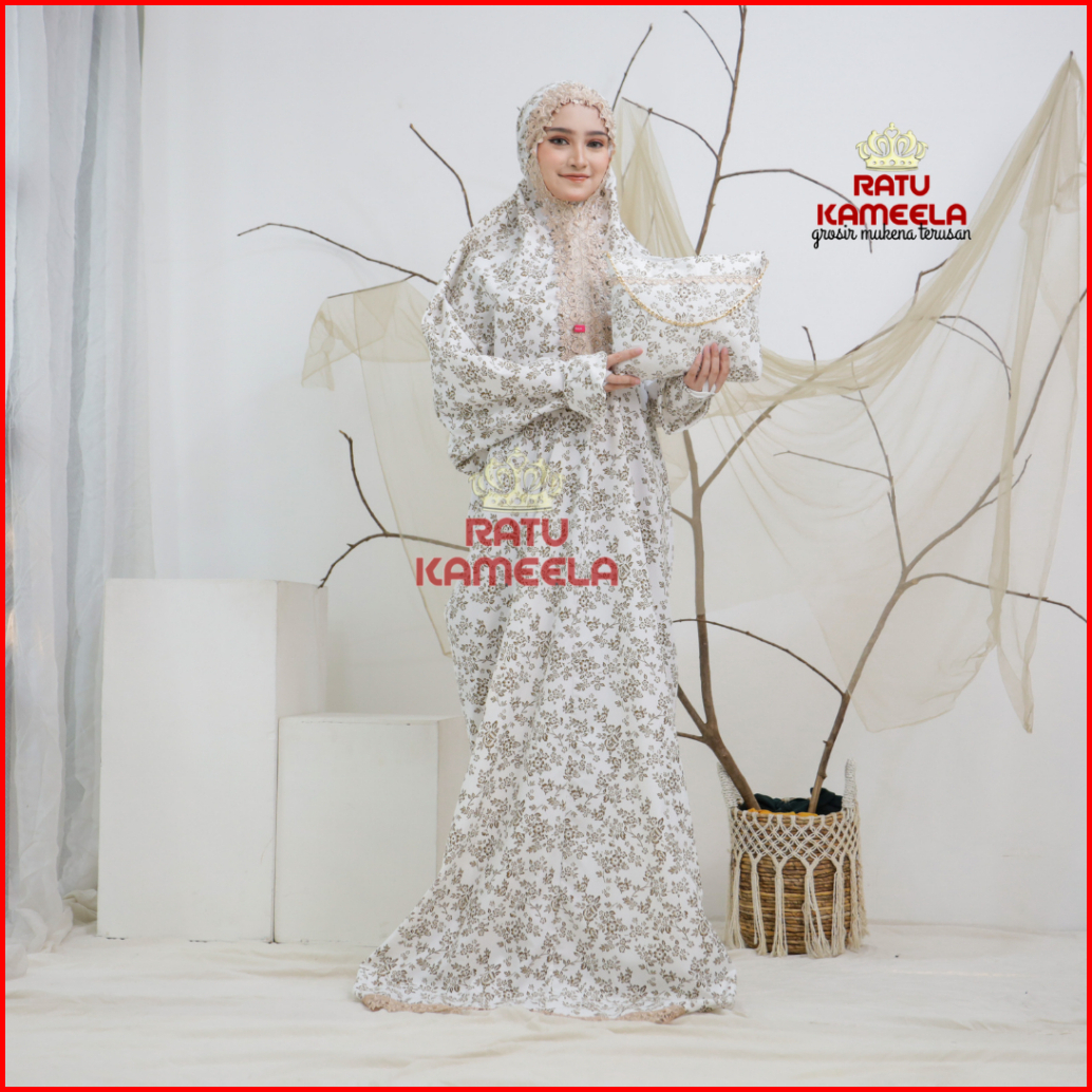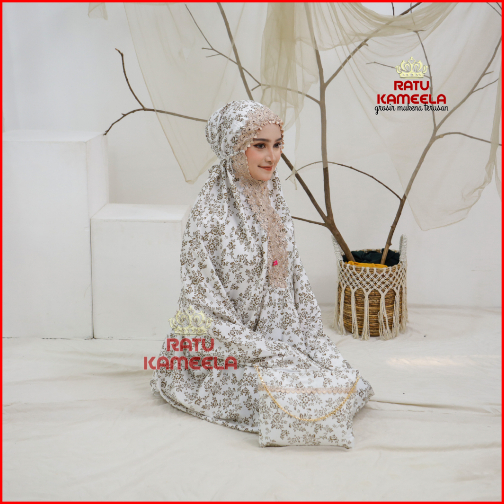 Ratu Kameela - Mukena Terusan Dewasa Premium Foil Gliter Renda Mewah