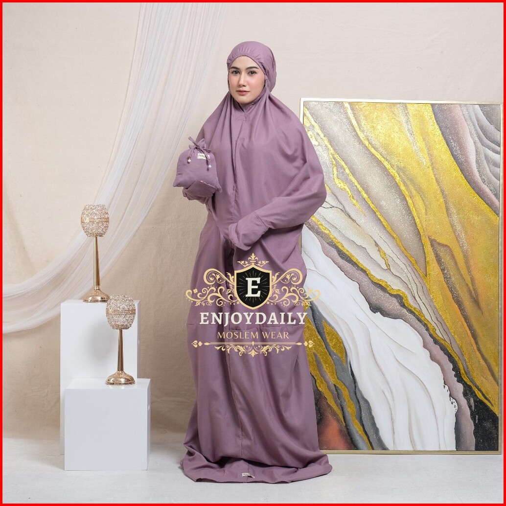 Enjoydaily - Mukena Terusan Dewasa Lajuran Langsungan Traveling Polos Katun Premium