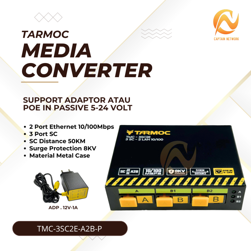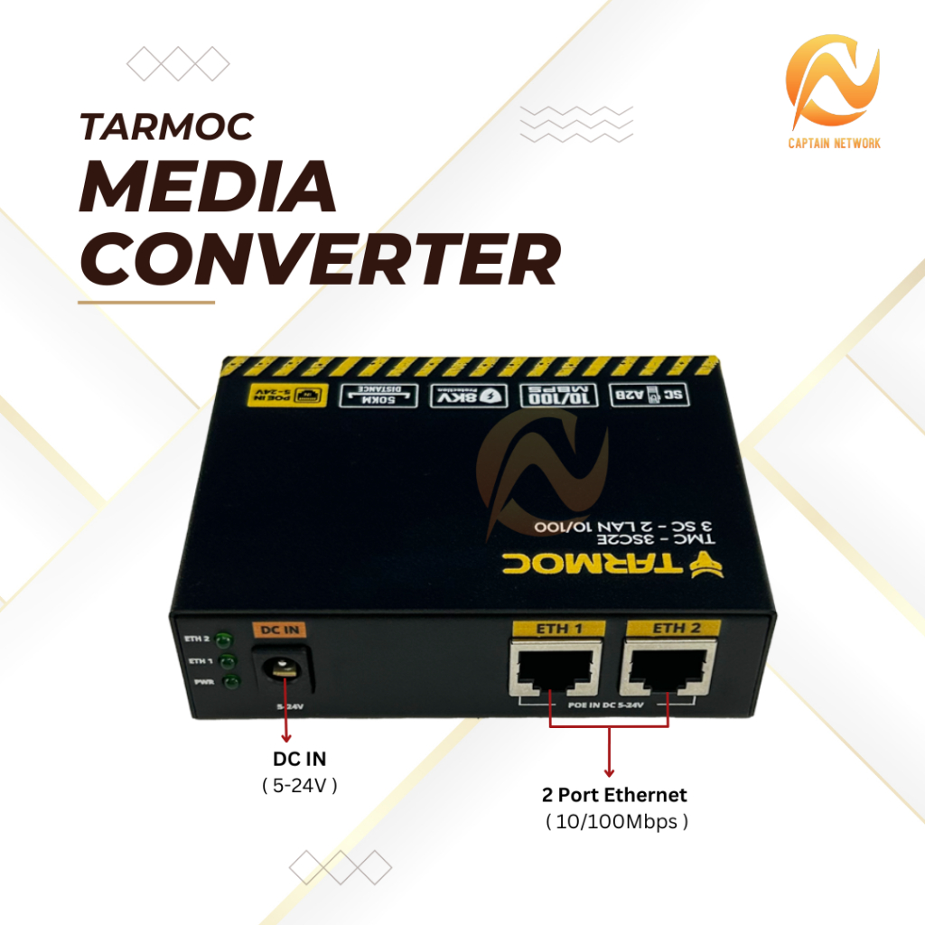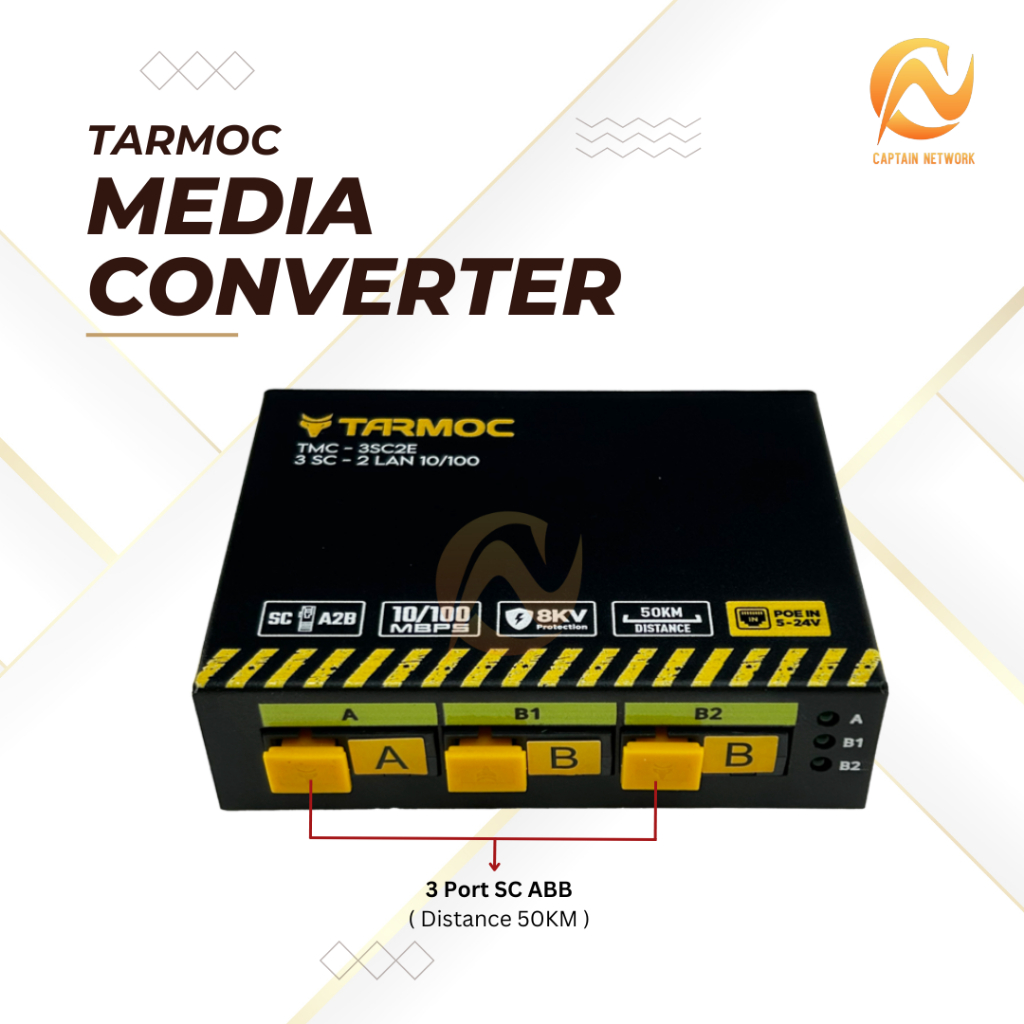 Tarmoc TMC-3SC2E-A2B-P | Media Converter Switch 3SC 2LAN / 3 SC 2 LAN 10/100Mbps POE IN 5-24 Volt | 3FO 2LAN / 3 FO 2 LAN 10/100 Mbps