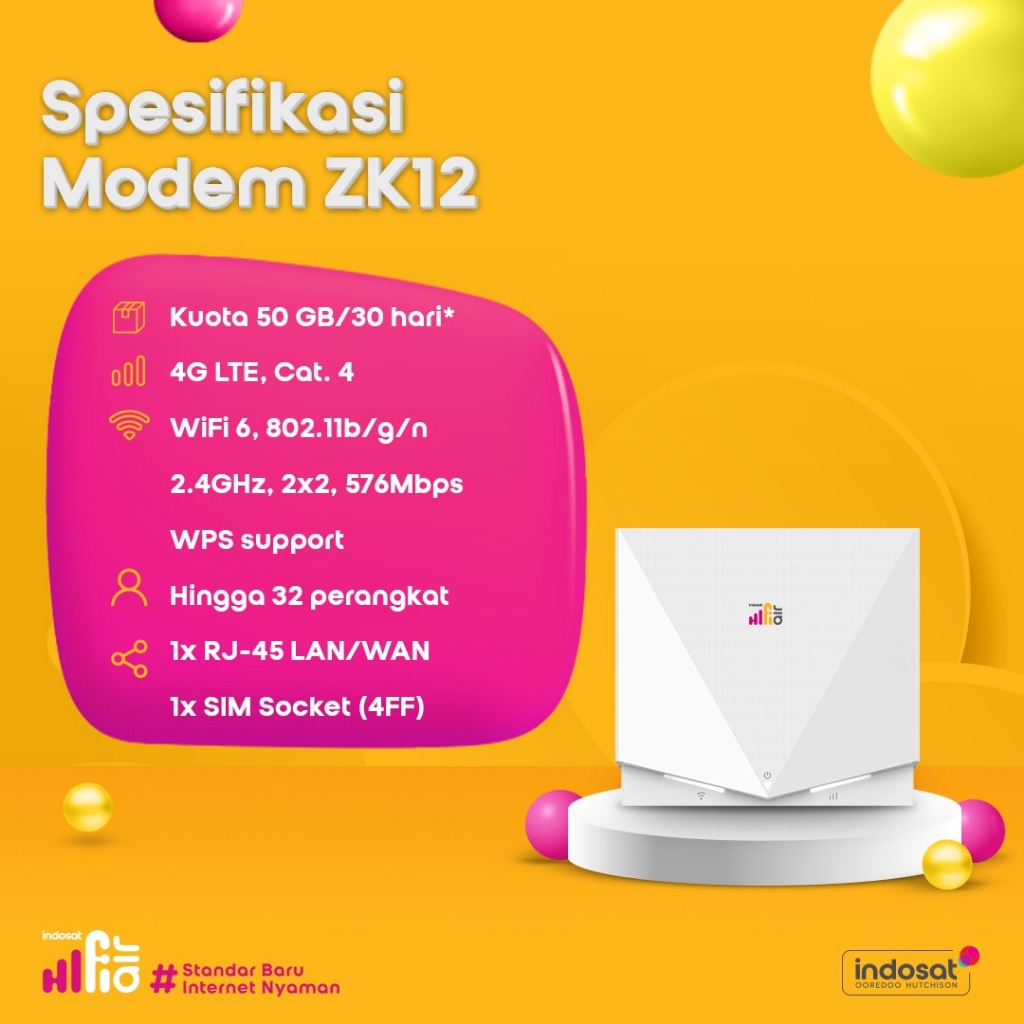 Indosat HiFi Air ZTE K12 Wifi Modem 4G LTE 50Gb