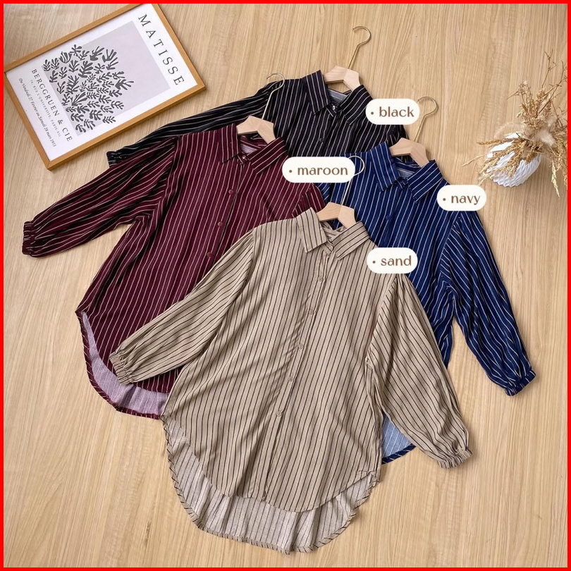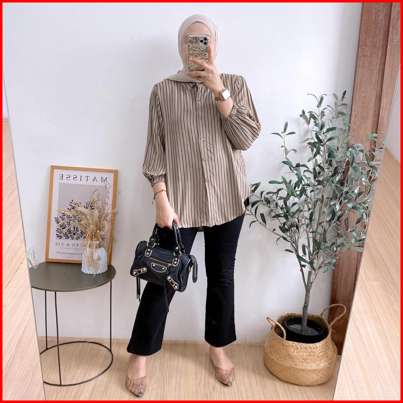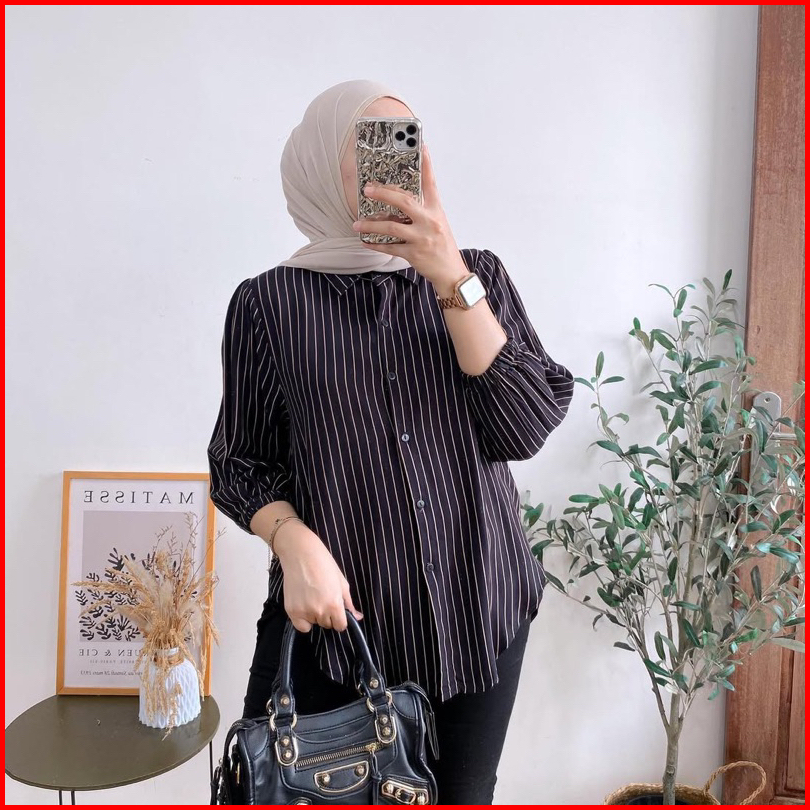 Atasan Wanita Salur Tangan Karet Rayon Premium Tangan 7 8-atasan-kerja-casual-adem-stripe-kekinian